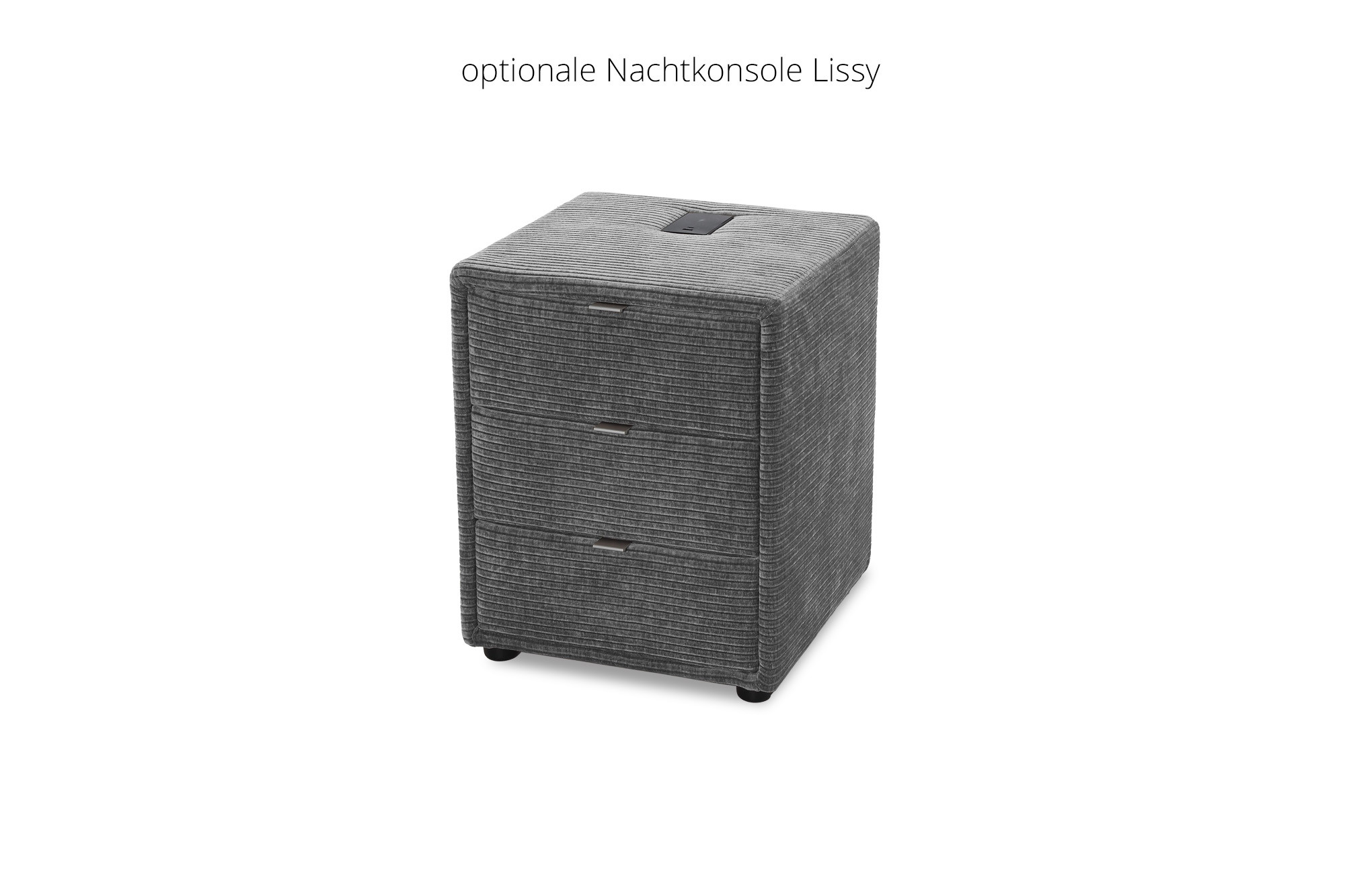 1x Nako Lissy mit 3 Schubkästen, induktives Laden, USB-A und USB-C-Ladeports, stoffbezogen, Kunststofffüße schwarz