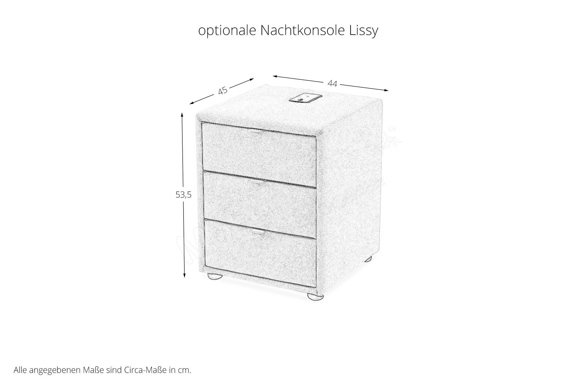1x Nako Lissy mit 3 Schubkästen, induktives Laden, USB-A und USB-C-Ladeports, stoffbezogen, Kunststofffüße schwarz