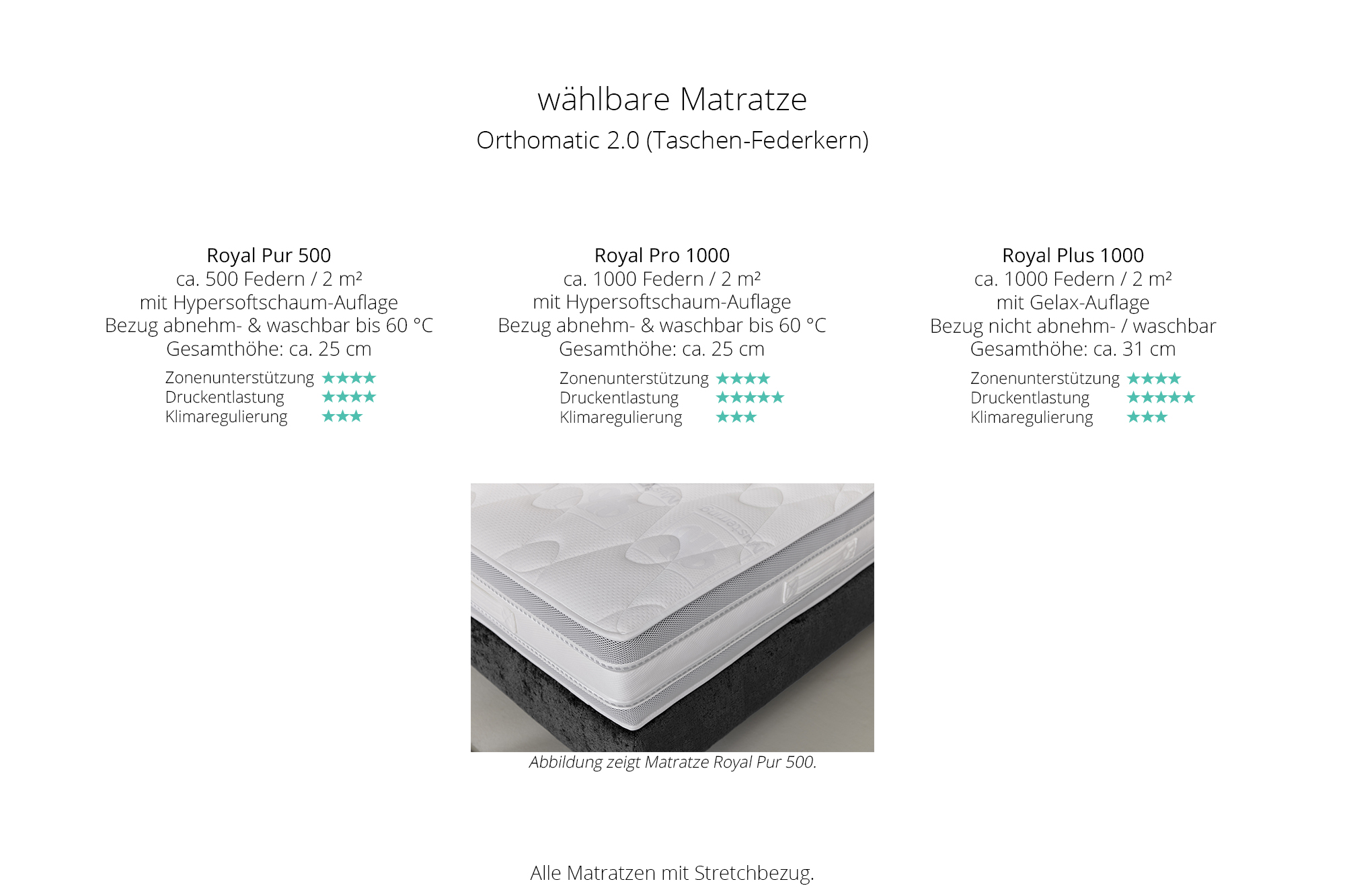 Auch in den Sonderlängen ca. 190, 210 und 220 cm erhältlich. - wählbare Matratze - Orthomatic 2.0: