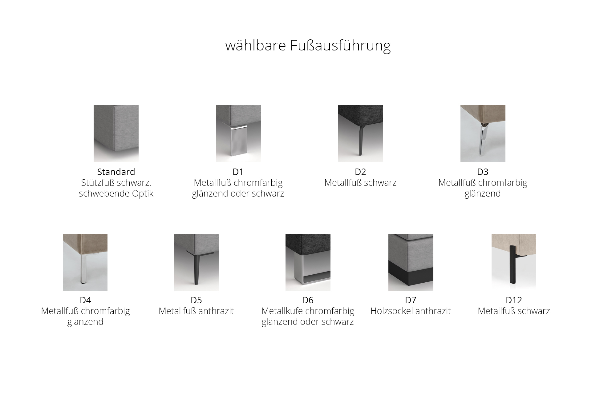 Auf Wunsch können die Kopfteile im Rücken in Möbelstoff bezogen werden. - wählbare Fußausführung: