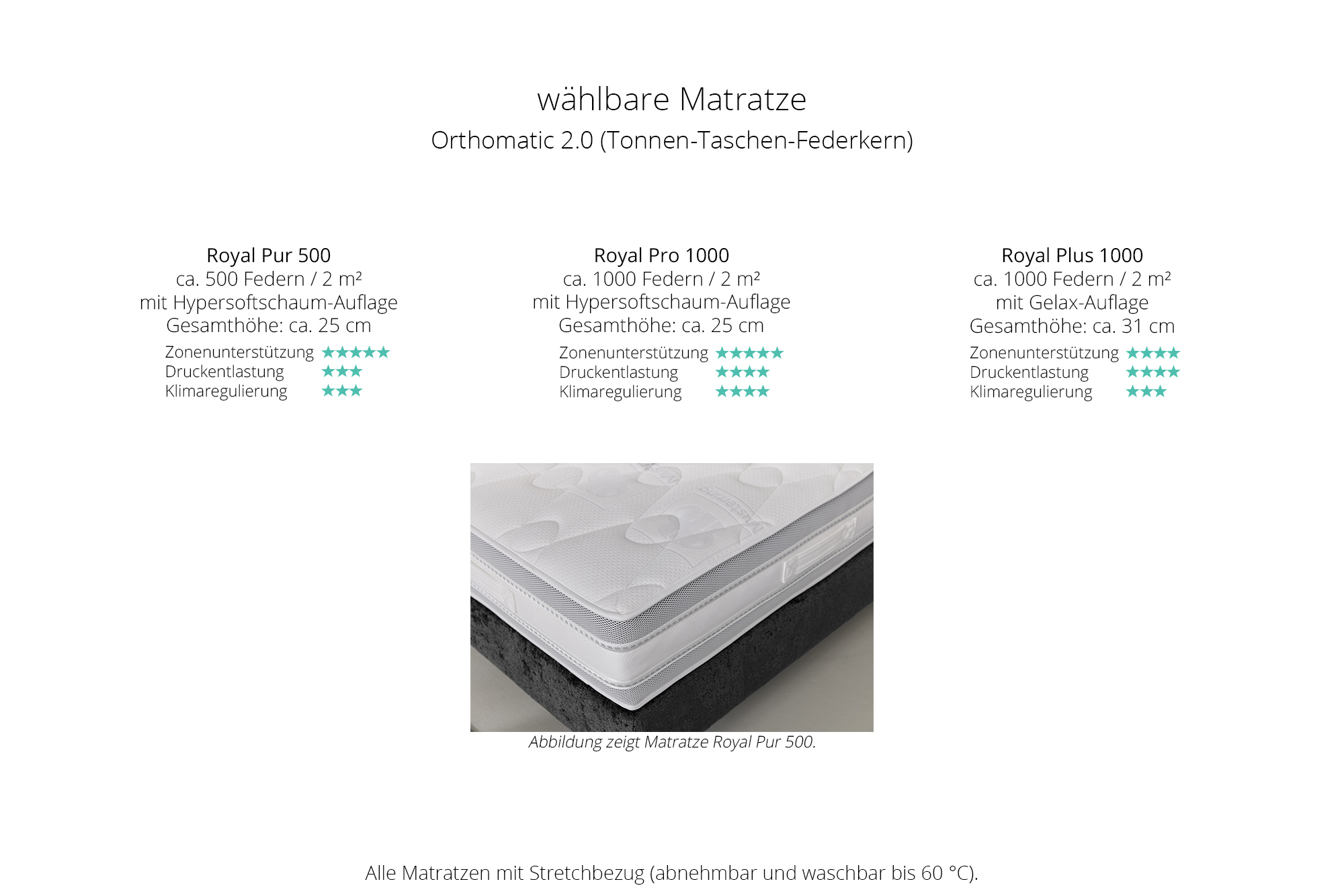 Auch in den Sonderlängen ca. 190, 210 und 220 cm erhältlich. - wählbare Matratze - Orthomatic 2.0: