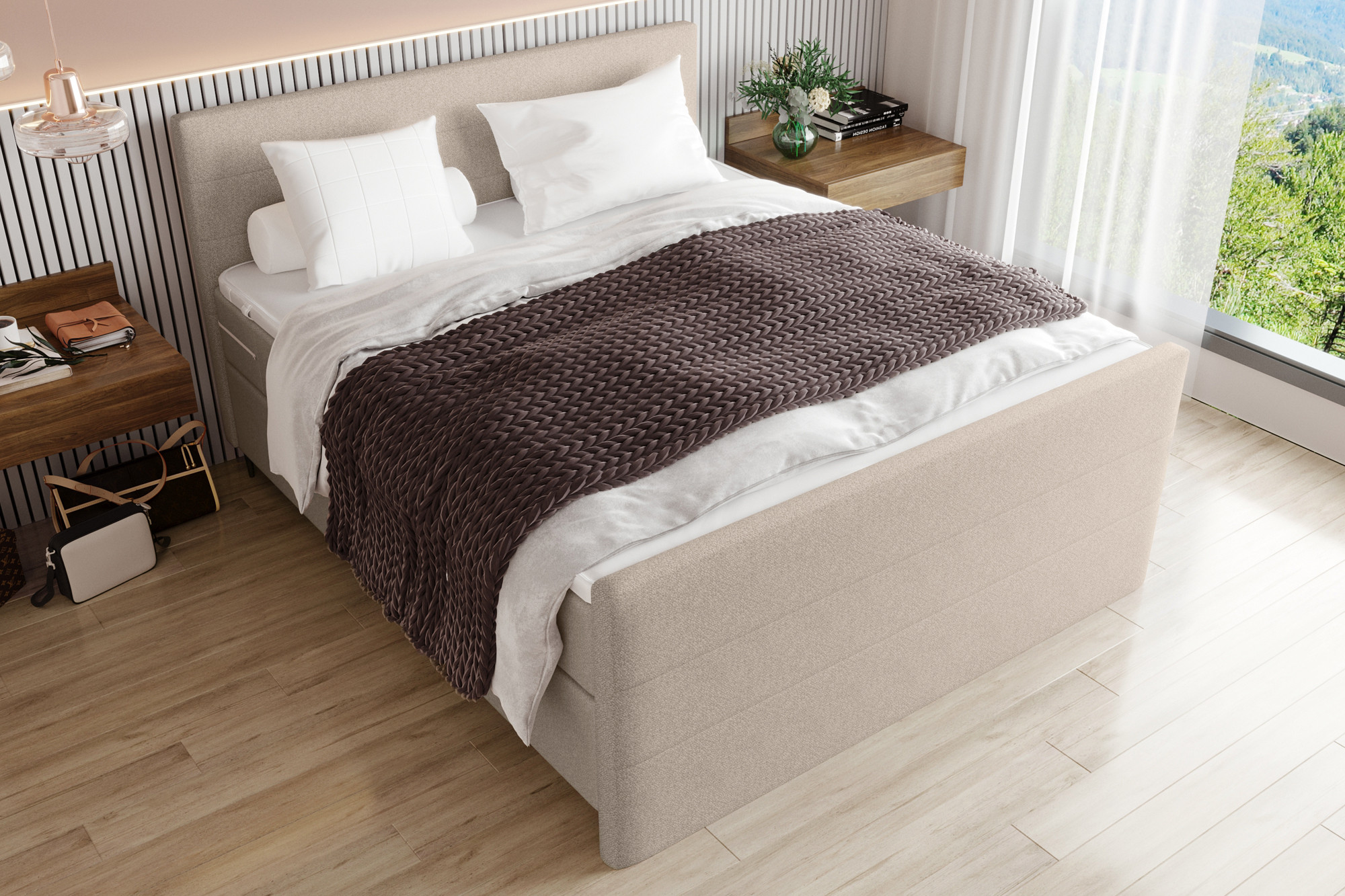 Boxspringbett beige von SW KOLLEKTION - Modell BX-LE-02 Dein Platz für die schönsten Stunden.