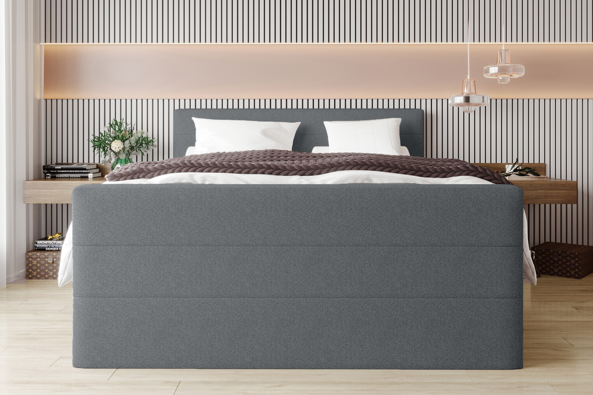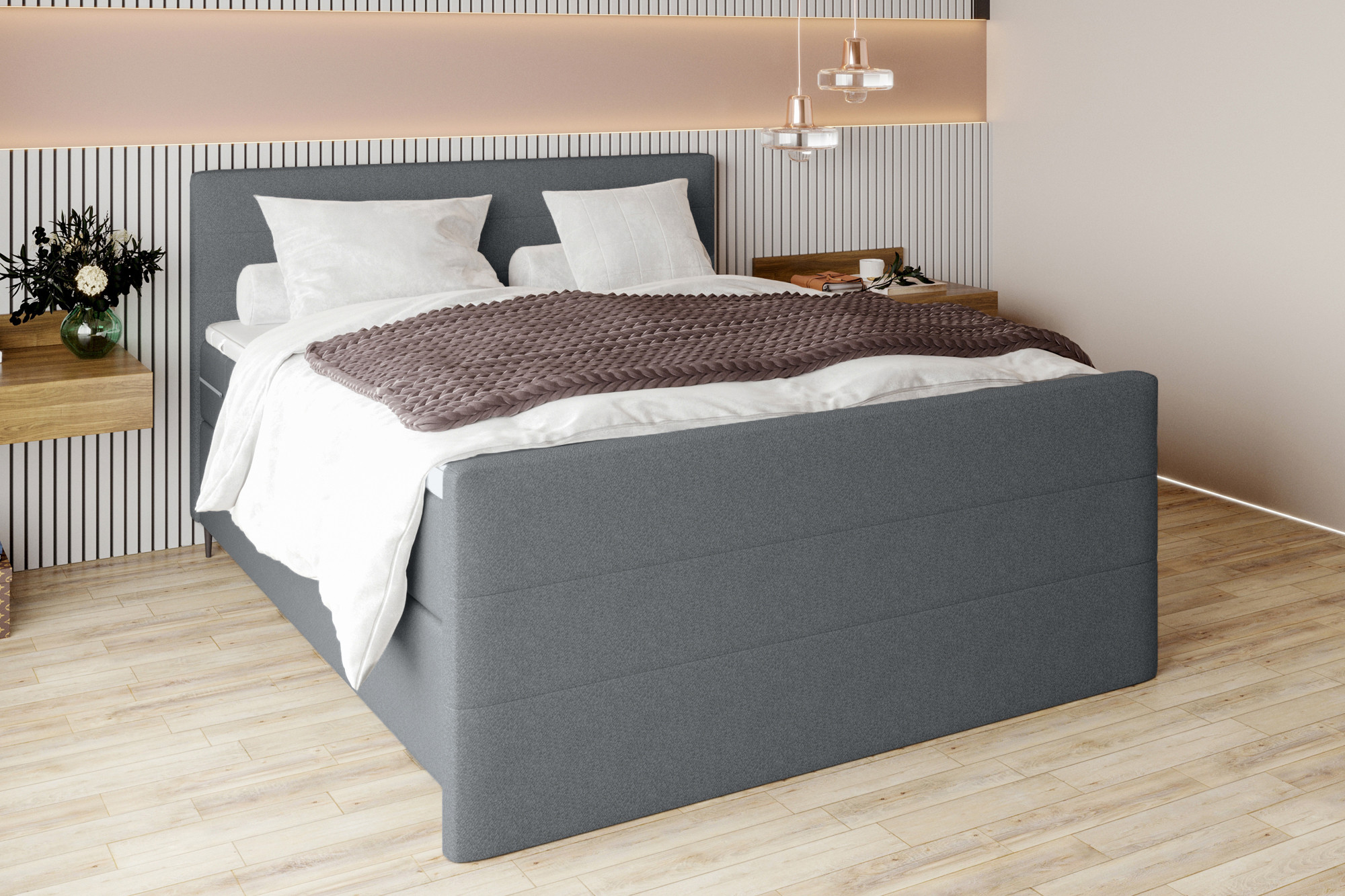 Boxspringbett dunkelgrau von SW KOLLEKTION - Modell BX-LE-02 Dein Platz für die schönsten Stunden.