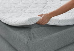 - Matratze: Duett - 7-Zonen-Taschen-Federkern, im Bezug wendbar mit einer weichen (H2) und einer festen (H3) Liegeseite, mit fest vernähtem Komfortschaum-Topper