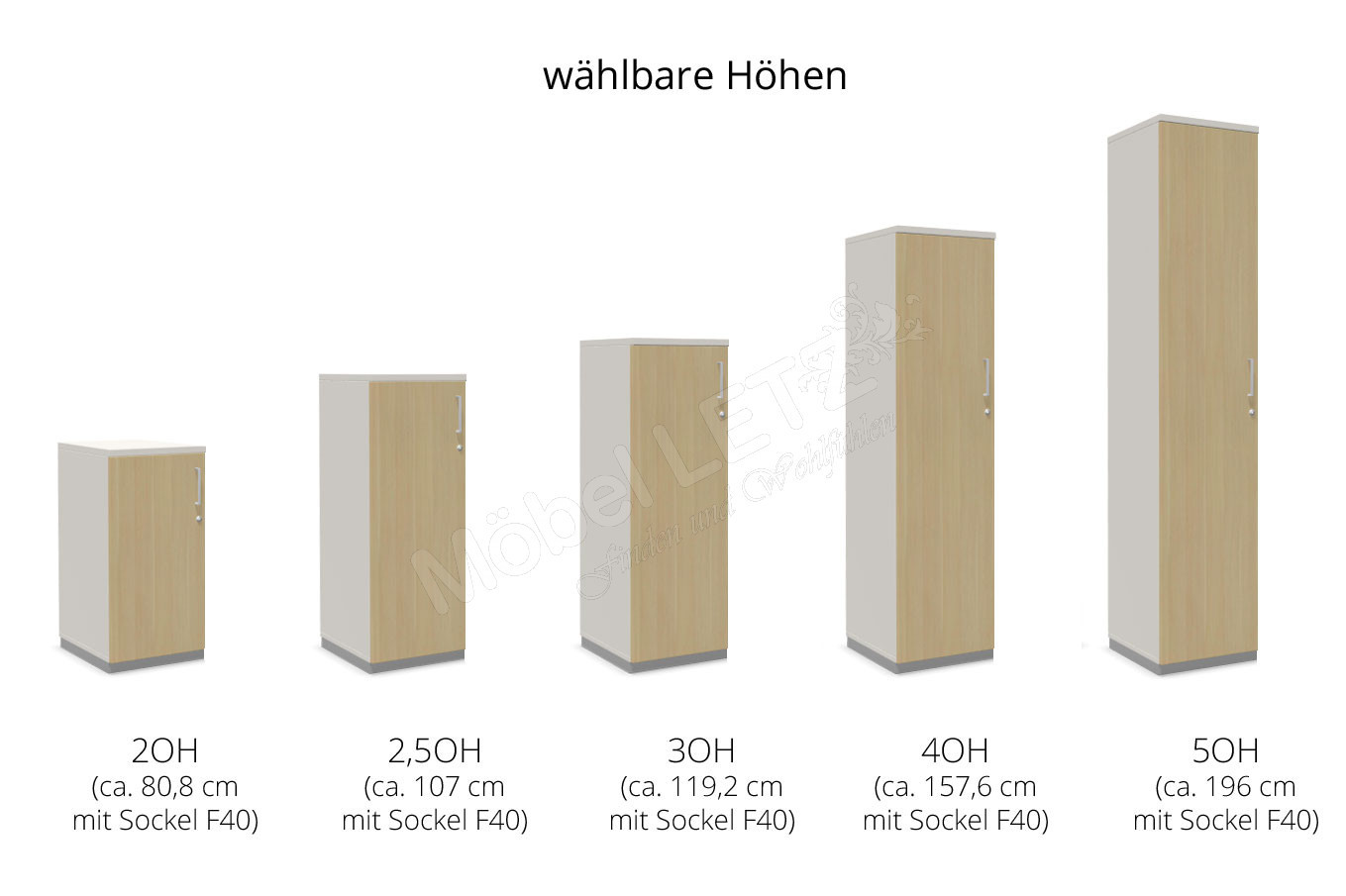 die Schrankhöhe verringert sich um ca. 3 cm (Art-Nr. F40-)