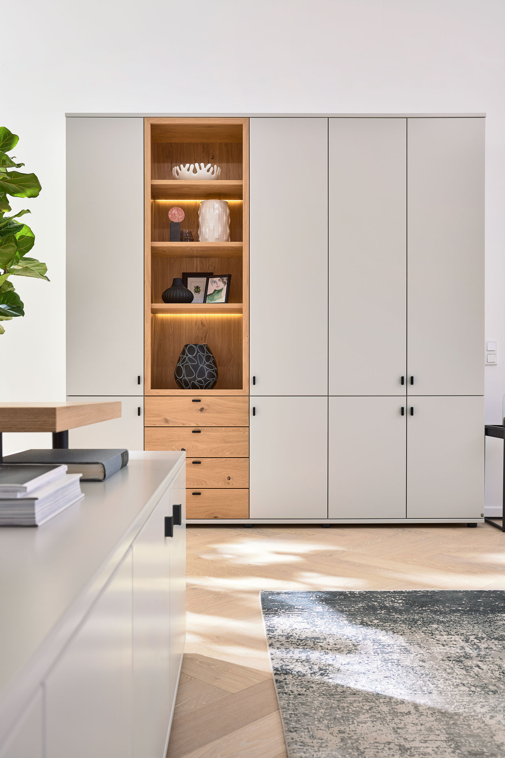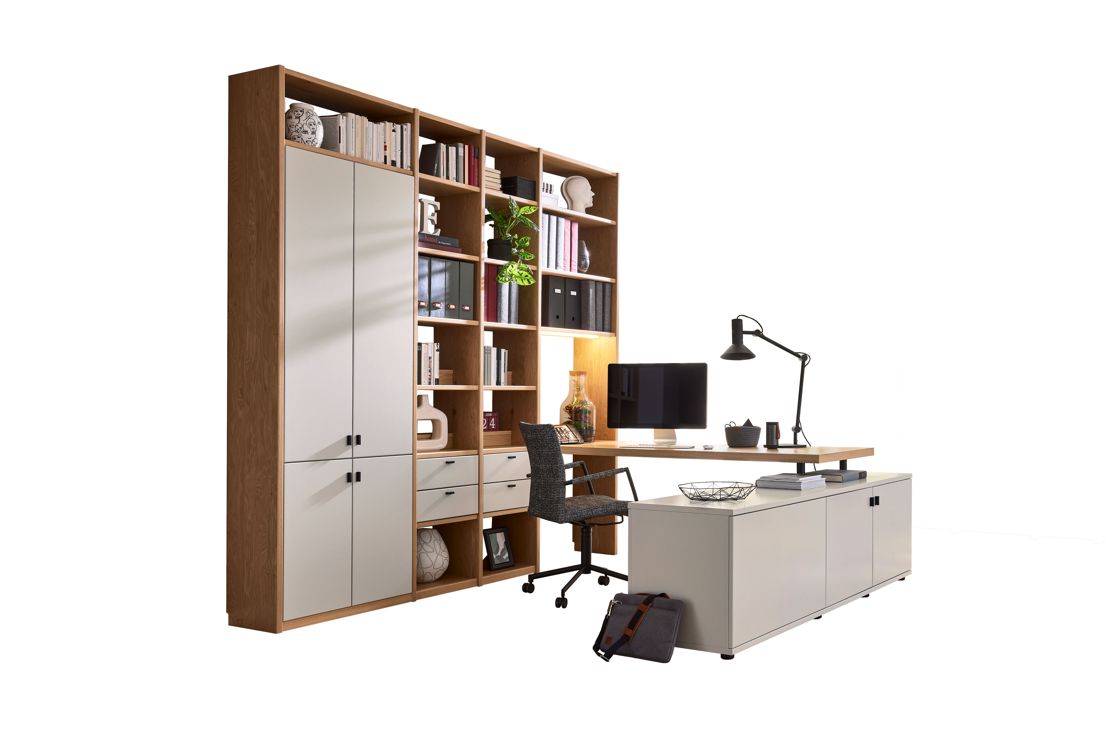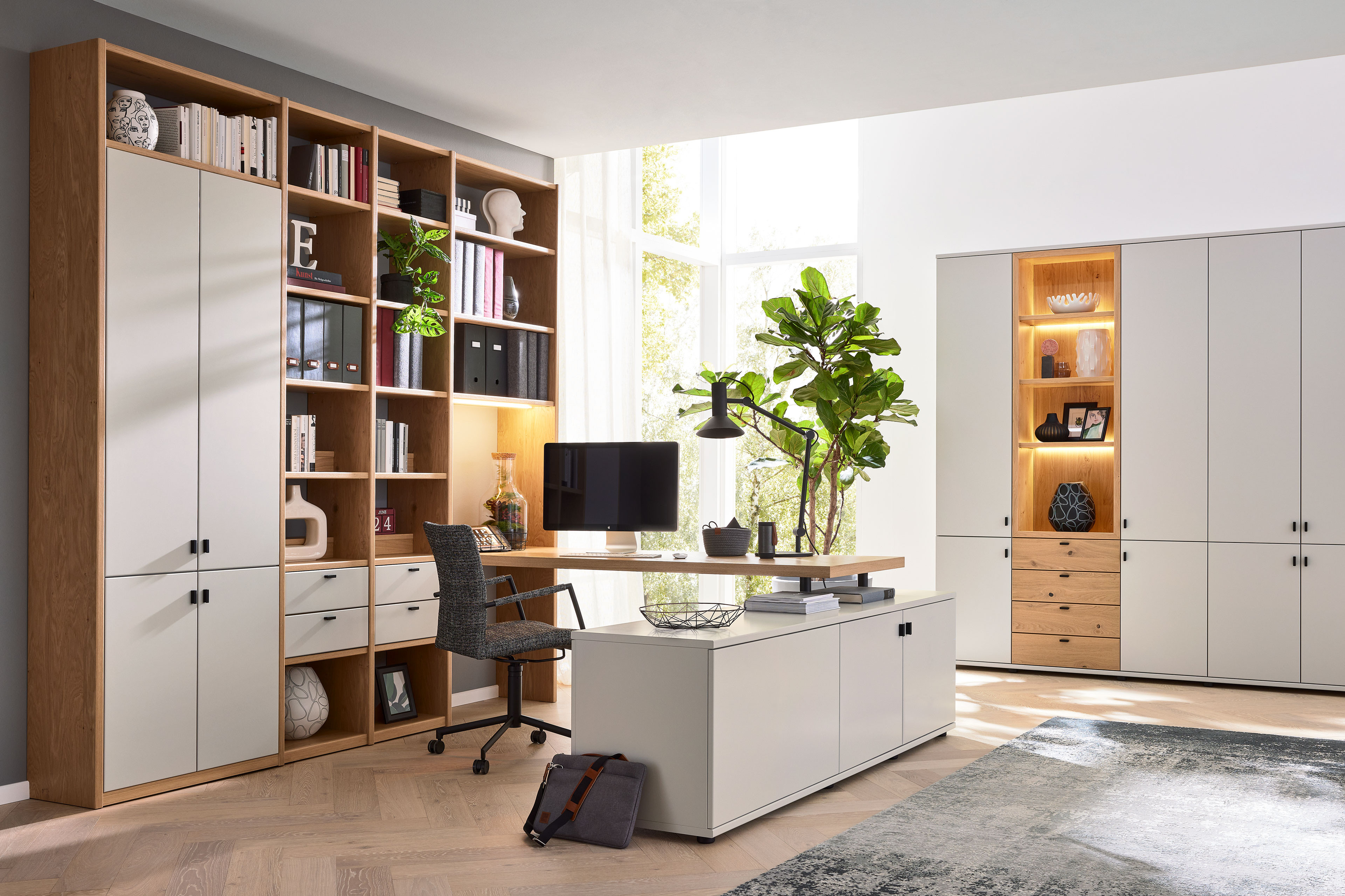 Home-Office-Büro von Musterring - Modell Kira-System in Brillantgrau & Asteiche-Furnier Kira-System - individuelle Wohnraumlösungen mit ausgeprägtem Designanspruch