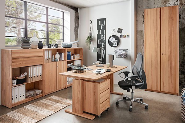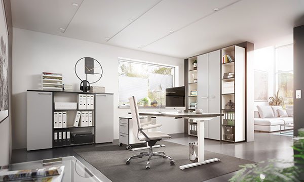Abschließbare Büromöbel, höhenverstellbare Schreibtische oder eine LED-Beleuchtung der Büromöbel - was darf es für Sie sein? Geschlossene Fronten verstecken Unterlagen und Büroutensilien ohnehin geschickt und ordentlich. Für persönliche oder besonders wichtige Dinge, die nicht für jeden zugänglich sein sollen, sind abschließbare Schubladen und Türen wie gemacht. Sie finden ein Büromöbel-Set mit abschließbarem Rollcontainer oder Schiebetürenschrank bei online Möbel kaufen von verschiedenen Marken. Gerade, wenn Sie sich das Heimbüro mit Ihrem Partner teilen oder die Schreibtischhöhe außerhalb der Standardmaße wählen möchten, dann empfiehlt sich ein höhenverstellbarer Schreibtisch. Bei einem Büromöbel-Set verschiedener namhafter Marken sind solche flexiblen Schreibtische oftmals enthalten. Auch beim Design dürfen Sie sich auf feine Besonderheiten freuen: Ein Büromöbel-Set mit Push-to-open-Technik wirkt zum einen edel minimalistisch und macht Ihnen das Öffnen der Schränke zum anderen besonders angenehm. Neben eleganten Metall- oder Holzelementen können Sie mit einer innovativen Beleuchtung warme wie auch elegante Akzente setzen: Ein Büromöbel-Set mit LED-Beleuchtung sorgt dank der indirekten Lichtquelle für einen gemütlichen Charakter im Firmenbüro oder dem heimischen Arbeitsbereich und rückt Ihre Souvenirs und Dekorationen in ein besonderes Licht. Die Beleuchtung ist beim Büromöbel-Set entweder inklusive oder lässt sich optional zubuchen.