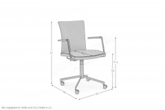 - Gestell: Vierfuß-Drehgestell, Ovalrohr, schwarz pulverbeschichtet, ca. 20 mm stark