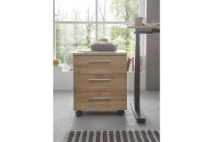 Sie sind auf der Suche nach einer praktischen Aufbewahrung für Ihr Büro oder das Home-Office? Dann ist der Bega Consult Rollcontainer Ben-Office die ideale Lösung für Sie. Mit seiner eleganten Melaminbeschichtung in Artisan Eiche Nachbildung passt er perfekt zu jeder Einrichtung und verleiht Ihrem Arbeitsplatz eine moderne Note. Ausgestattet mit drei geräumigen Schubkästen bietet er ausreichend Platz für Ihre Unterlagen, Büromaterialien und persönliche Gegenstände. Dank seiner kompakten Maße von ca. 56 cm in der Höhe und von ca. 40 cm in der Breite passt der Rollcontainer unter jeden Schreibtisch und ist somit platzsparend. Das hochwertige Material und die erstklassige Verarbeitung sorgen für eine lange Lebensdauer und machen den Container zu einem zuverlässigen Begleiter im Arbeitsalltag. Gestalten Sie das Büro oder Ihr Home-Office effizient und stilvoll mit dem Bega Consult Rollcontainer Ben-Office. Bestellen Sie jetzt und optimieren Sie Ihren Arbeitsbereich mit diesem praktischen und zeitlosen Möbelstück.