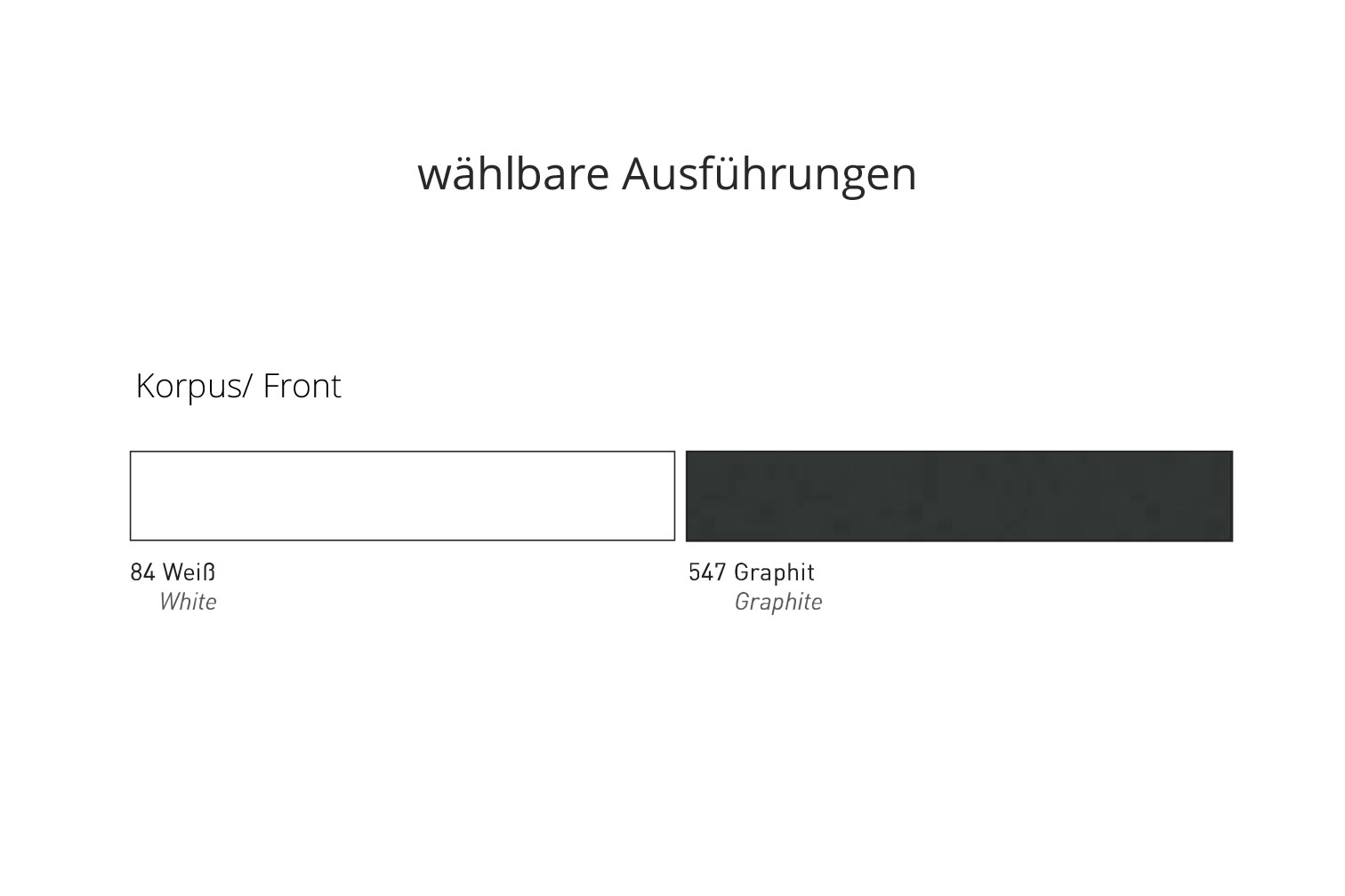 - Korpus/ Front: 84 - weiß, Spanplatte melaminharzbeschichtet, mit ABS-Kanten