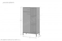 Highboard mit 1 Tür, 1 Schubkasten und 3 offenen Fächern (Art-Nr. 2235)