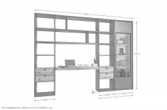 - Wohnregal mit 14 offenen Fächern, 4 Schubkästen, 1 Schreibplatte und 1 Vitrine mit 6 Fächern