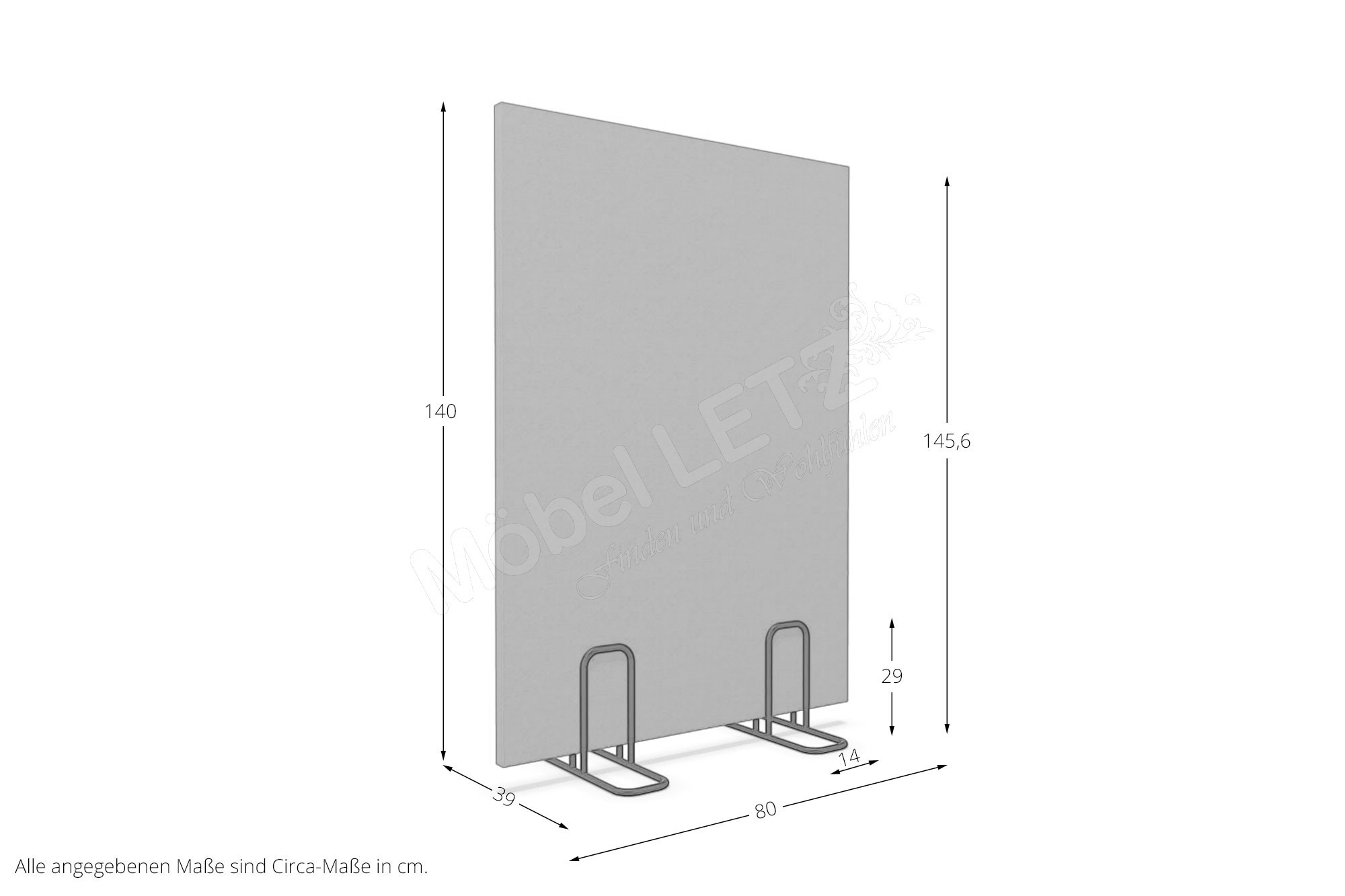 Höhe der Paneelwand ohne Füße (Art-Nr. H1400)