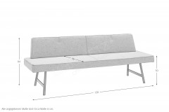 Die Bank Arizona des österreichischen Herstellers Schösswender vereint modernes Design mit gemütlichem Ambiente. Mit einem stabilen, schwarz lackierten Metallgestell bietet sie nicht nur eine ansprechende Optik, sondern auch eine robuste Grundlage für den täglichen Gebrauch. Der hochwertige Flockstoff in einem hellen Grau sorgt für eine angenehme Haptik und fügt sich harmonisch in verschiedene Wohnumgebungen ein. Im Grundangebot weist die Bank eine Breite von etwa 150 cm auf, die sich ideal für unterschiedlichste Raumkonzepte eignet. Darüber hinaus sind weitere Größen wählbar, sodass die Bank flexibel an Ihre individuellen Bedürfnisse angepasst werden kann. Ein herausragendes Merkmal der Schösswender Bank ist die Kategorie "Wunschbezug". Hierbei erhalten Sie die Möglichkeit, aus einer Vielzahl von Farben und Materialien zu wählen, um Ihre neue Sitzgelegenheit perfekt auf Ihre persönliche Einrichtung abzustimmen. Die Kombination aus hochwertiger Verarbeitung, ansprechendem Design und individueller Anpassungsmöglichkeit macht die Arizona von Schösswender zu einer ausgezeichneten Wahl für alle, die Wert auf Qualität und Ästhetik legen.