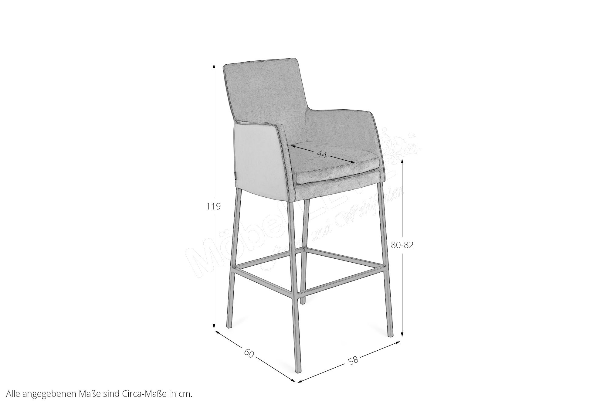 - 1 x 61244 - Barhocker, BHT ca.: 58/119/60 cm