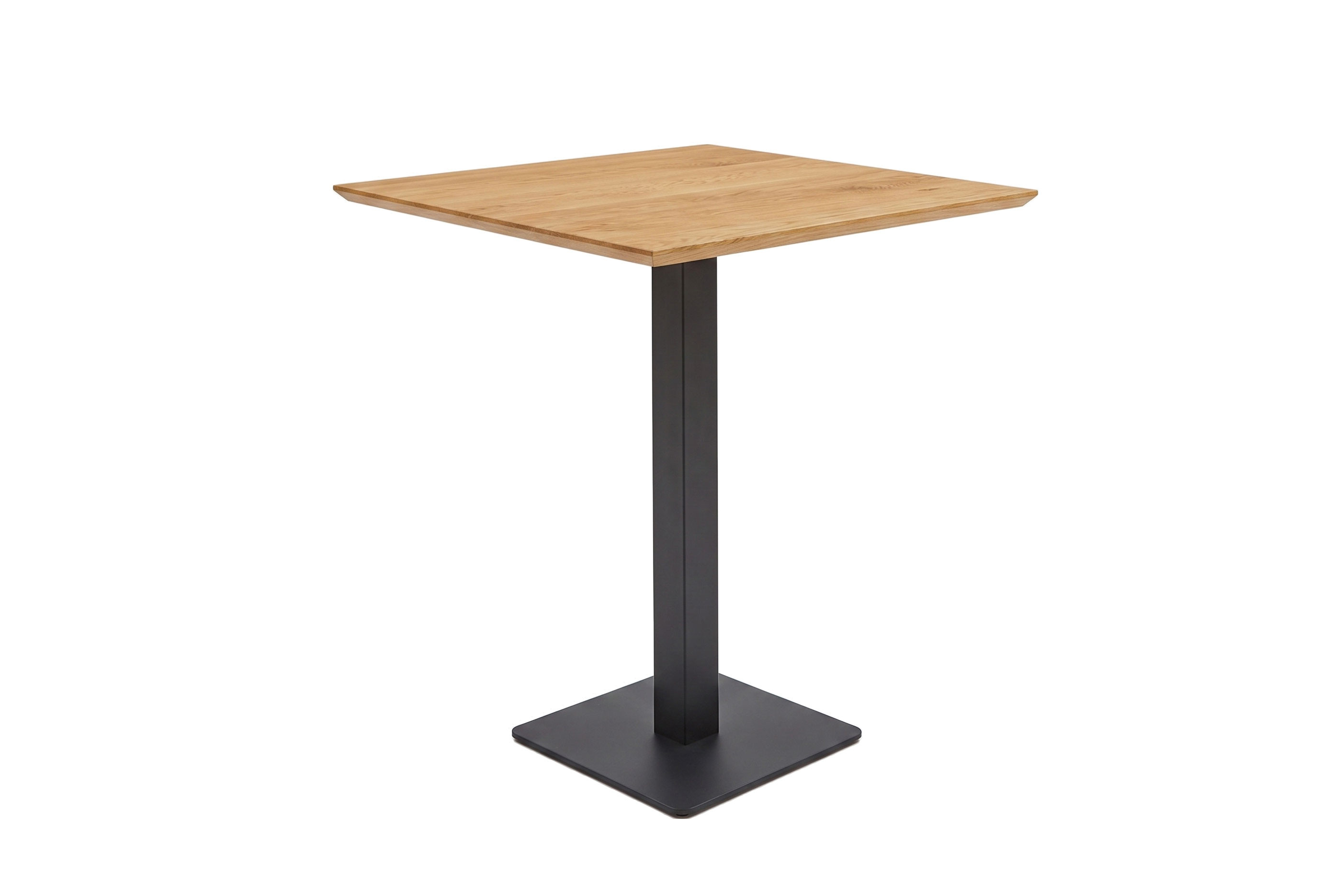 - Tischplatte: quadratisch, Wildeiche massiv geölt, mit Facettenkante, ca. 28 mm stark