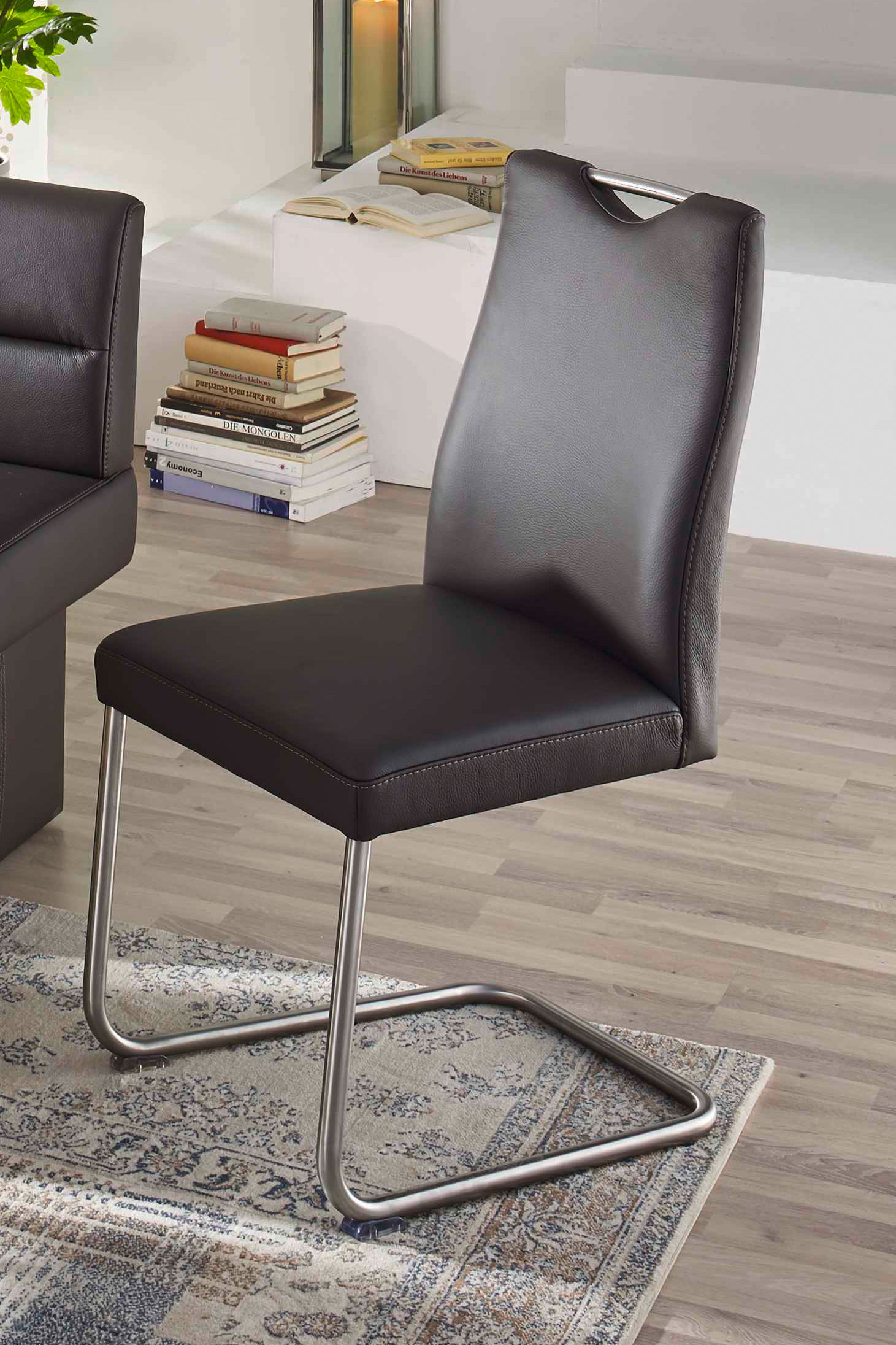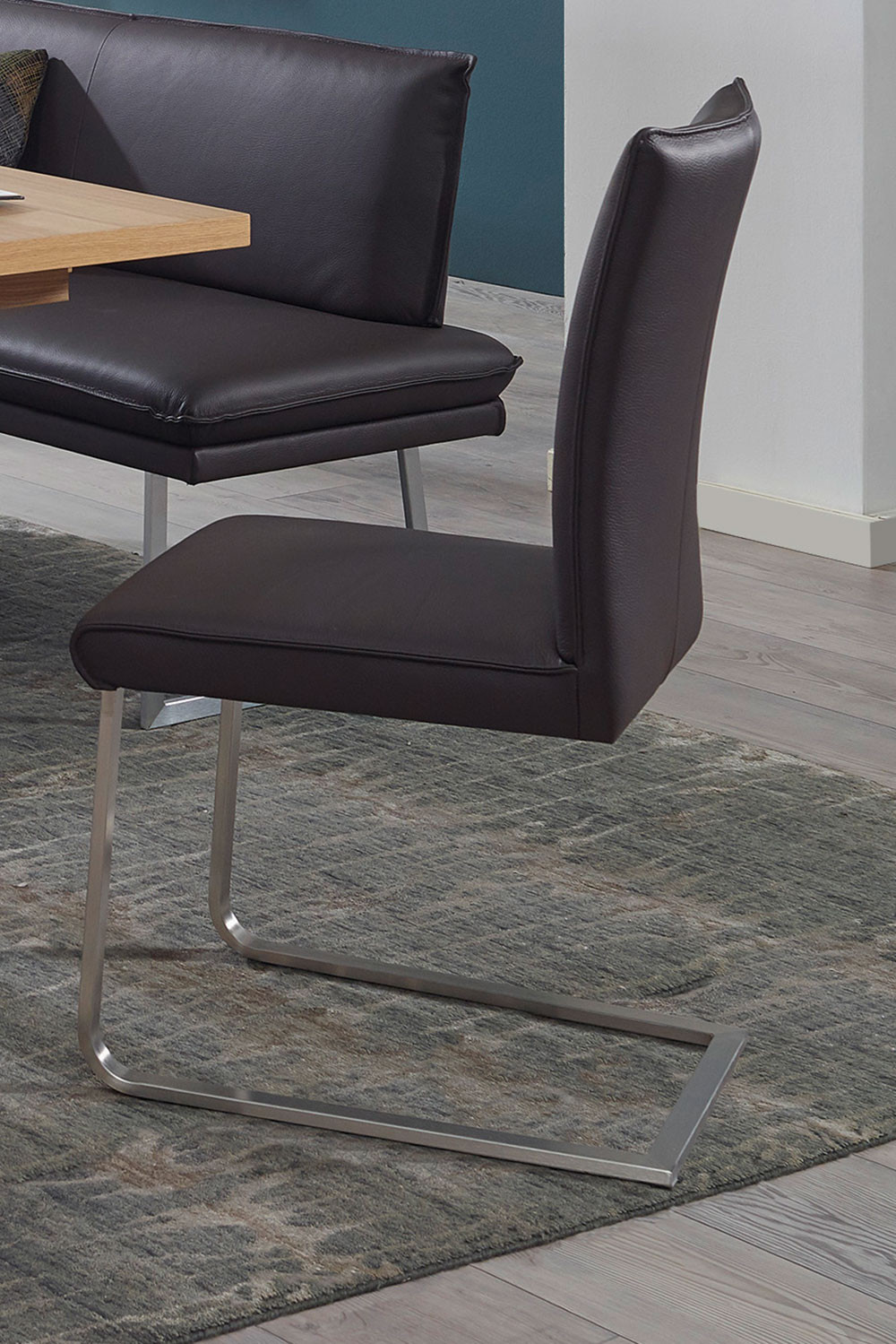 Die K+W Eckbank 4197 Wunschbank Game kristallisiert sich als zeitlos klassisches Modell mit modernem Touch heraus und weiß auf ganzer Linie zu begeistern. Nehmen Sie zukünftig auf der gemütlichen Polsterung, eine Kombination aus Wellenunterfederung mit solidem Polyätherschaum, Platz und lehnen Sie sich ebenso bequem zurück. Während der gemeinsamen Zeit mit den Liebsten ist die Eckbank stets ein treuer Begleiter, auf dem Sie, bei Bedarf, gern auch etwas zusammenrücken können, um den ein oder anderen zusätzlichen Sitzplatz zu schaffen. Ebenso stilvoll und komfortabel präsentieren sich die beiden Freischwinger 6197. Mit diesen und auch dem Esstisch 5191 können Sie Ihre neue Eckbank harmonisch ergänzen und so ein stimmiges Gesamtbild in Ihren Räumlichkeiten erzeugen. Zum im Grundangebot ausgewählten Leder gibt es auch Alternativbezüge, für die Sie sich entscheiden können. Sie bevorzugen ein pflegeleichtes Microfaser oder aber ein robustes Flachgewebe? Anstatt des Schokotons wünschen Sie sich einen schwarzen, roten oder gelben Bezug? Alles kein Problem dank der großzügigen Farbpalette. Entscheiden Sie nach Belieben und stellen Sie sich Ihre Lieblingskombination mit der K+W Eckbank 4197 Wunschbank Game zusammen.