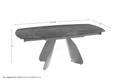 - Tischplatte: Keramik Zementgrau, ca. 3 mm stark auf einer ca. 8 mm starken Glasplatte aufliegend