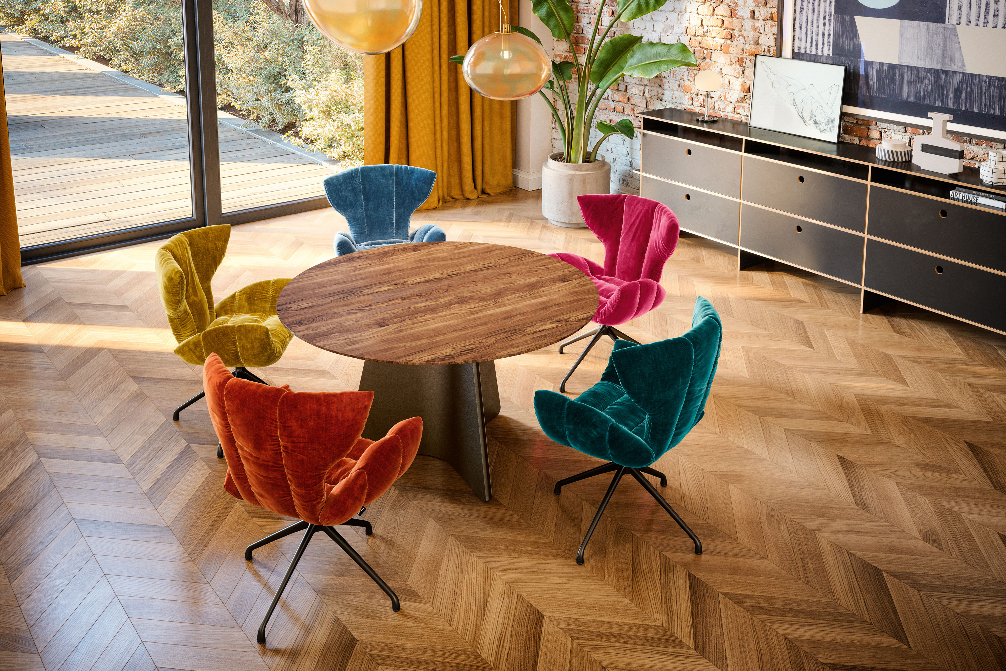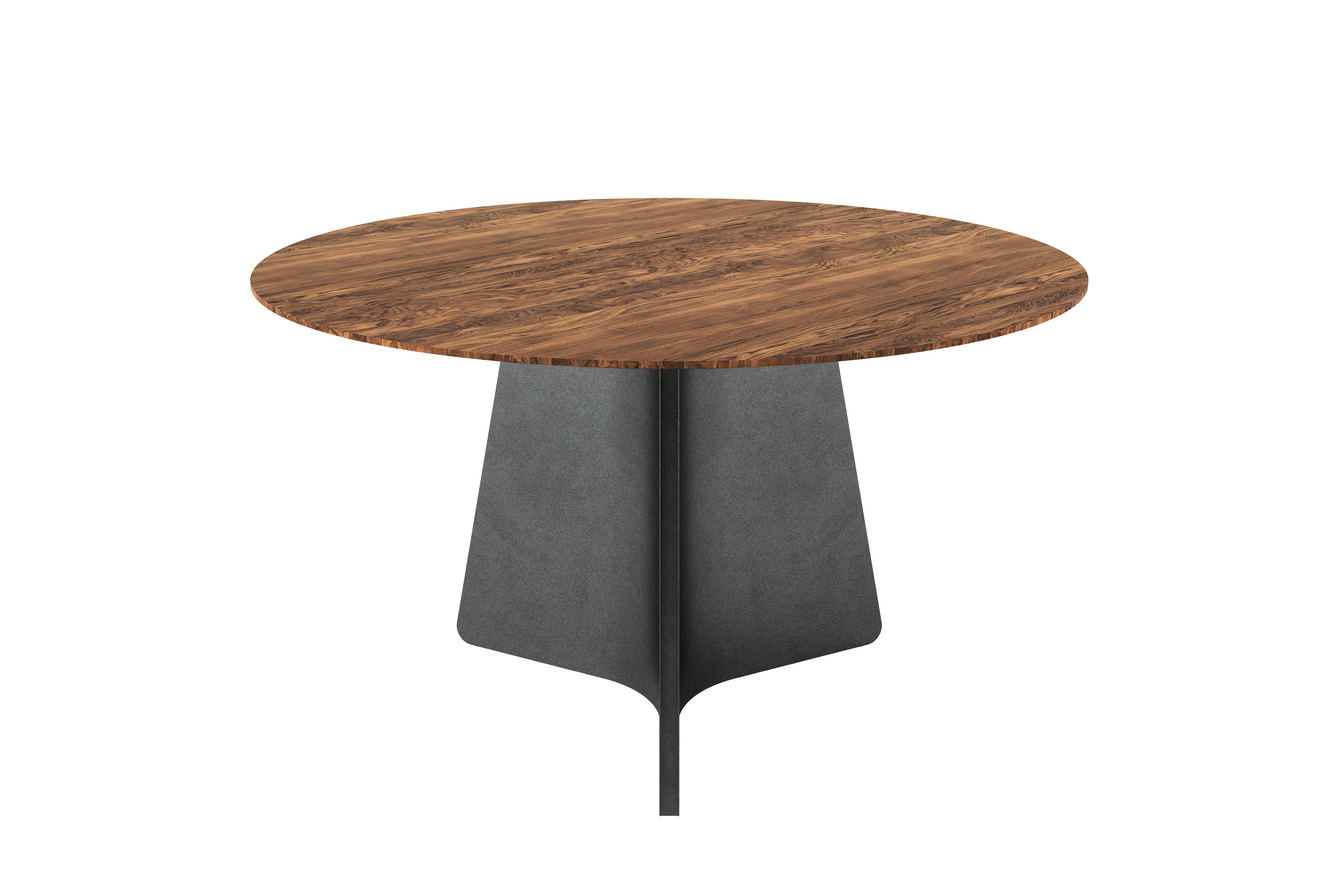 Der Esstisch Maona aus dem Hause Bretz ist mehr als ein Möbelstück – er ist ein architektonisches Statement, das den Raum nicht nur füllt, sondern definiert. Hier begegnen sich Natur und Konstruktion, Sinnlichkeit und Präzision, Erdung und Eleganz in einer Form, die zeitlos wirkt und doch unverkennbar modern ist. Die runde Tischplatte mit einem Durchmesser von etwa 130 cm entfaltet eine stille, souveräne Präsenz. Gefertigt aus massiven amerikanischem Nussbaum, erzählt sie von Handwerk und Haltung. Die matt lackierte Oberfläche betont die natürliche Maserung des Holzes, lässt Licht und Schatten über die Struktur wandern und schafft eine haptische Tiefe. Der dunkle, nuancierte Ton verleiht dem Nussbaum eine fast kosmische Anmutung – kraftvoll, warm, authentisch. Ebenso bewahrt matte Lackierung dabei die Natürlichkeit und schützt zugleich für den Alltag mit Stil. Getragen wird diese organische Kraft von einem markanten Stahlgestell. Hier trifft Massivholz auf Metall – ein spannungsreicher Dialog, der Stabilität nicht versteckt, sondern zelebriert. Die klare Linienführung des Stahls bildet einen bewussten Kontrast zur lebendigen Holzstruktur und schafft eine Balance aus architektonischer Strenge und natürlicher Weichheit. Maona wirkt dadurch wie eine Skulptur im Raum – funktional, aber mit künstlerischem Anspruch. Die runde Form fördert Begegnung, sie lädt ein zum gemeinsamen Frühstück im ersten Licht des Tages, zu ausgedehnten Dinnerabenden, zu Gesprächen, die sich entwickeln wie die Maserung im Holz – frei, organisch, überraschend. Hier findet die Familie ebenso Platz wie der Freundeskreis, hier verschmelzen Alltag und Anlass zu einem stilvollen Gesamterlebnis. Und doch bleibt der Bretz Esstisch Maona wandelbar, denn weitere Ausführungen sind wählbar und eröffnen individuelle Gestaltungsspielräume. Ob als zentrales Herzstück im offenen Wohnbereich, als Solitär im Loft oder als charismatischer Kontrapunkt in klassischer Architektur – dieser Tisch passt sich nicht an, er fügt sich ein und prägt zugleich. Mit Maona beweist Bretz erneut sein Gespür für außergewöhnliches Design und kompromisslose Qualität. Für Ästheten und Pragmatiker, für Gastgeber und Genießer, für alle, die das Besondere suchen und das Echte schätzen.