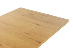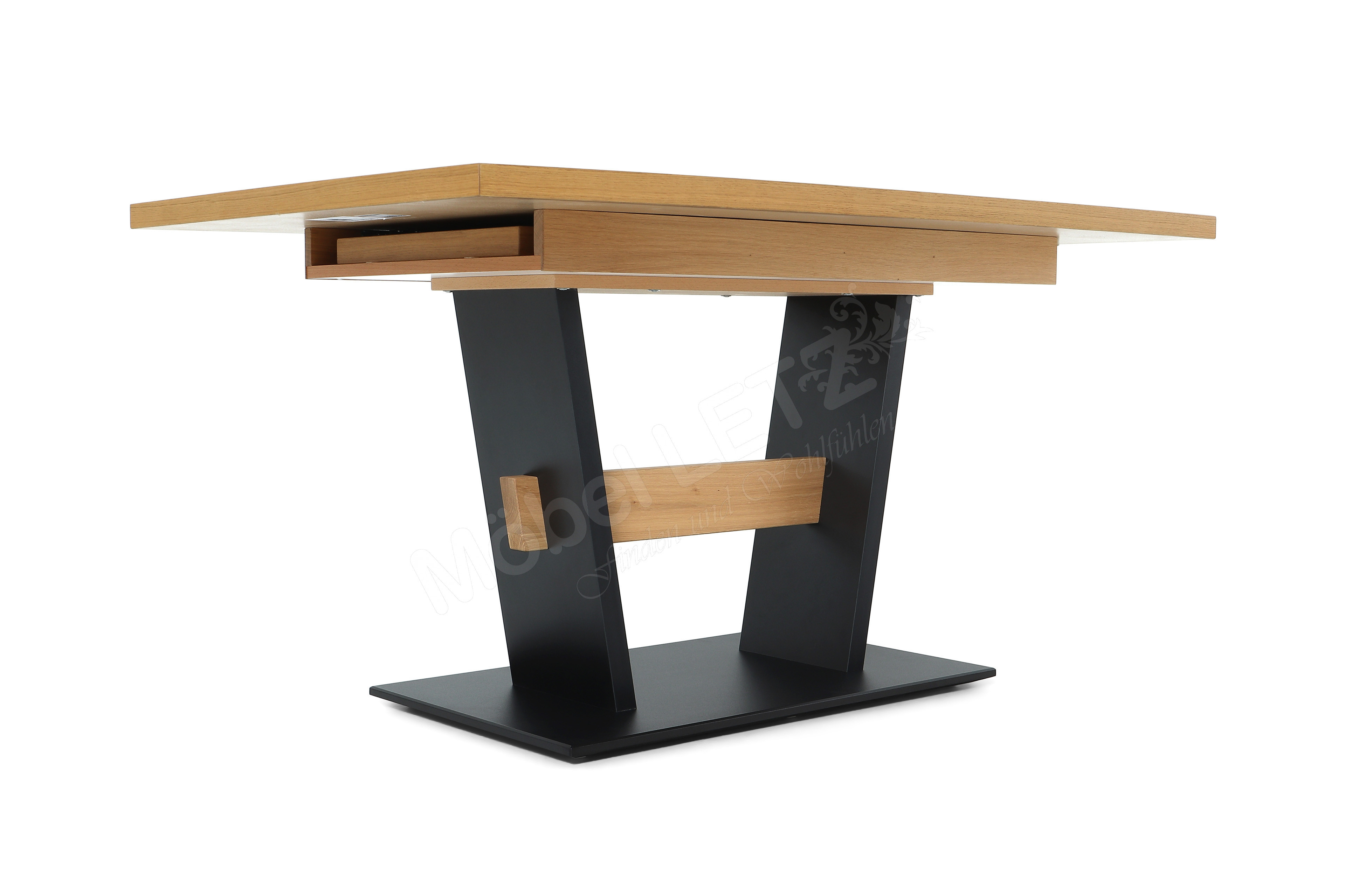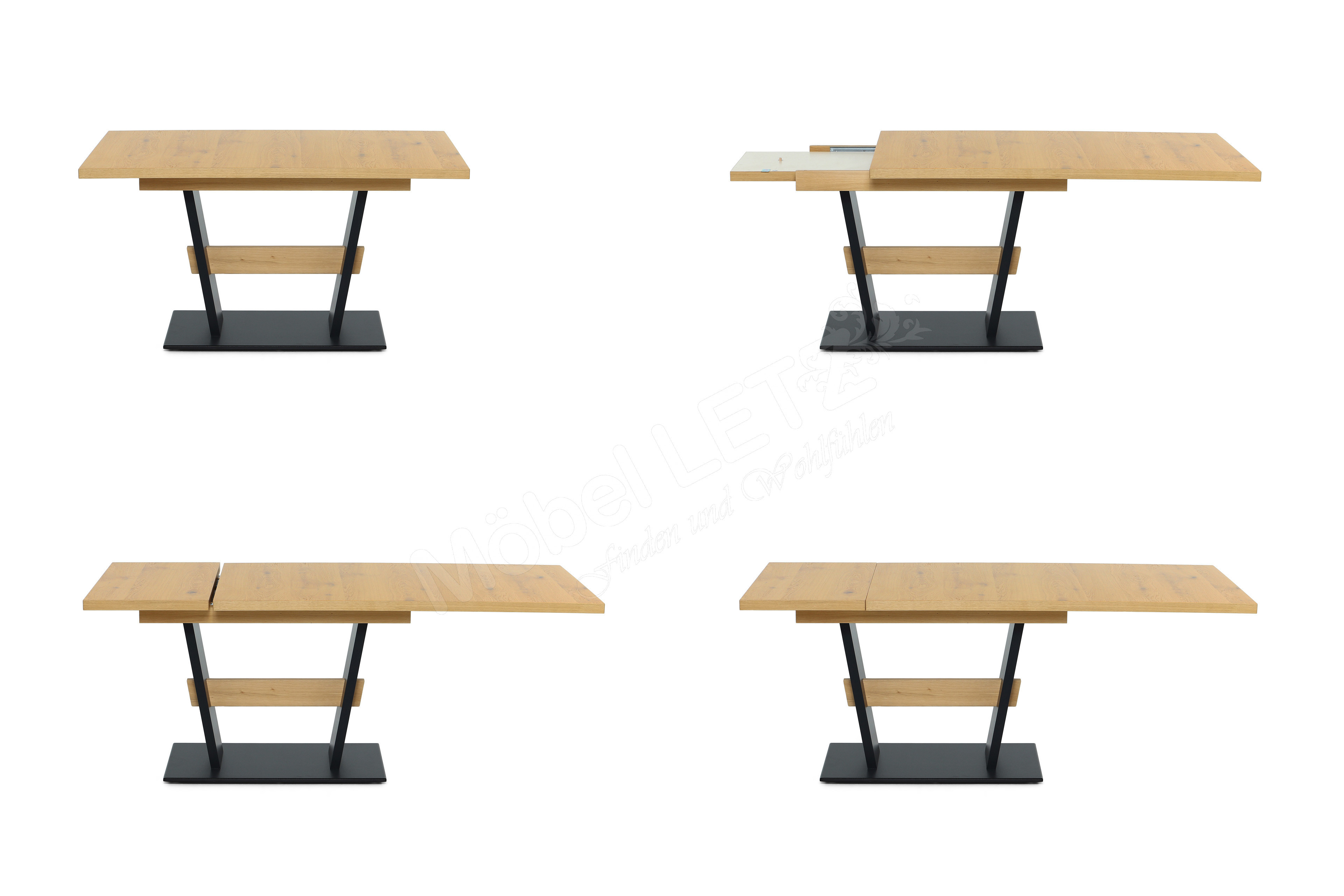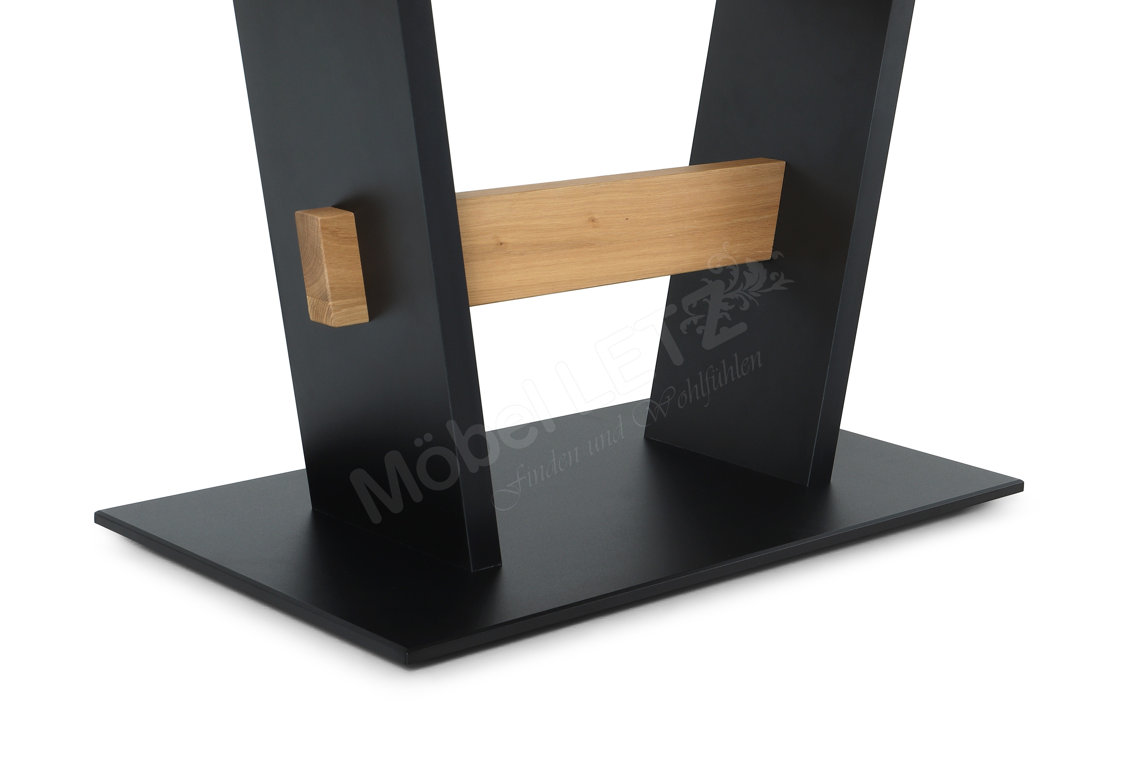 - Tischplatte & Querbalken: Wildeiche natur furniert, UV-beschichtet mit Öl-Effekt