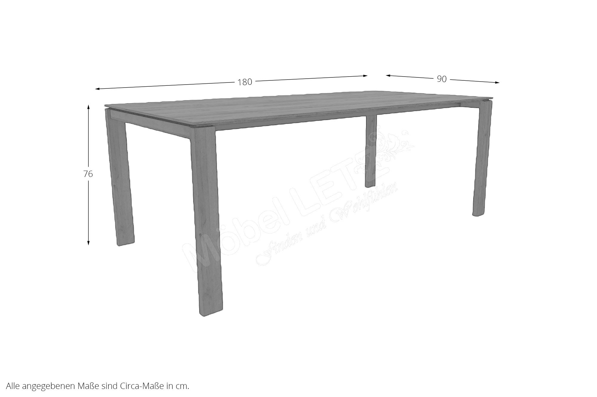 - 1 x T0300-E23 - Esstisch, BHT ca.: 180/76/90 cm