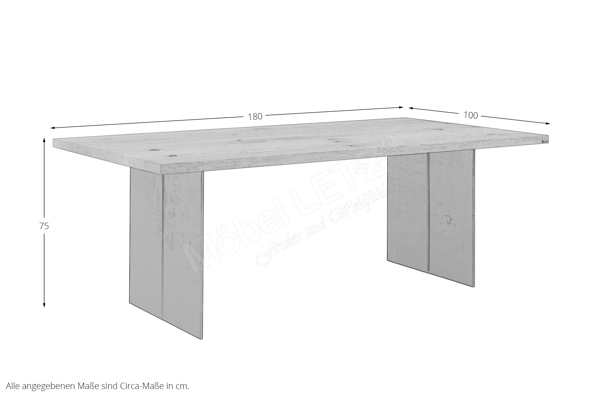 - Tischplatte: Asteiche massiv, geölt, ca. 4 cm stark