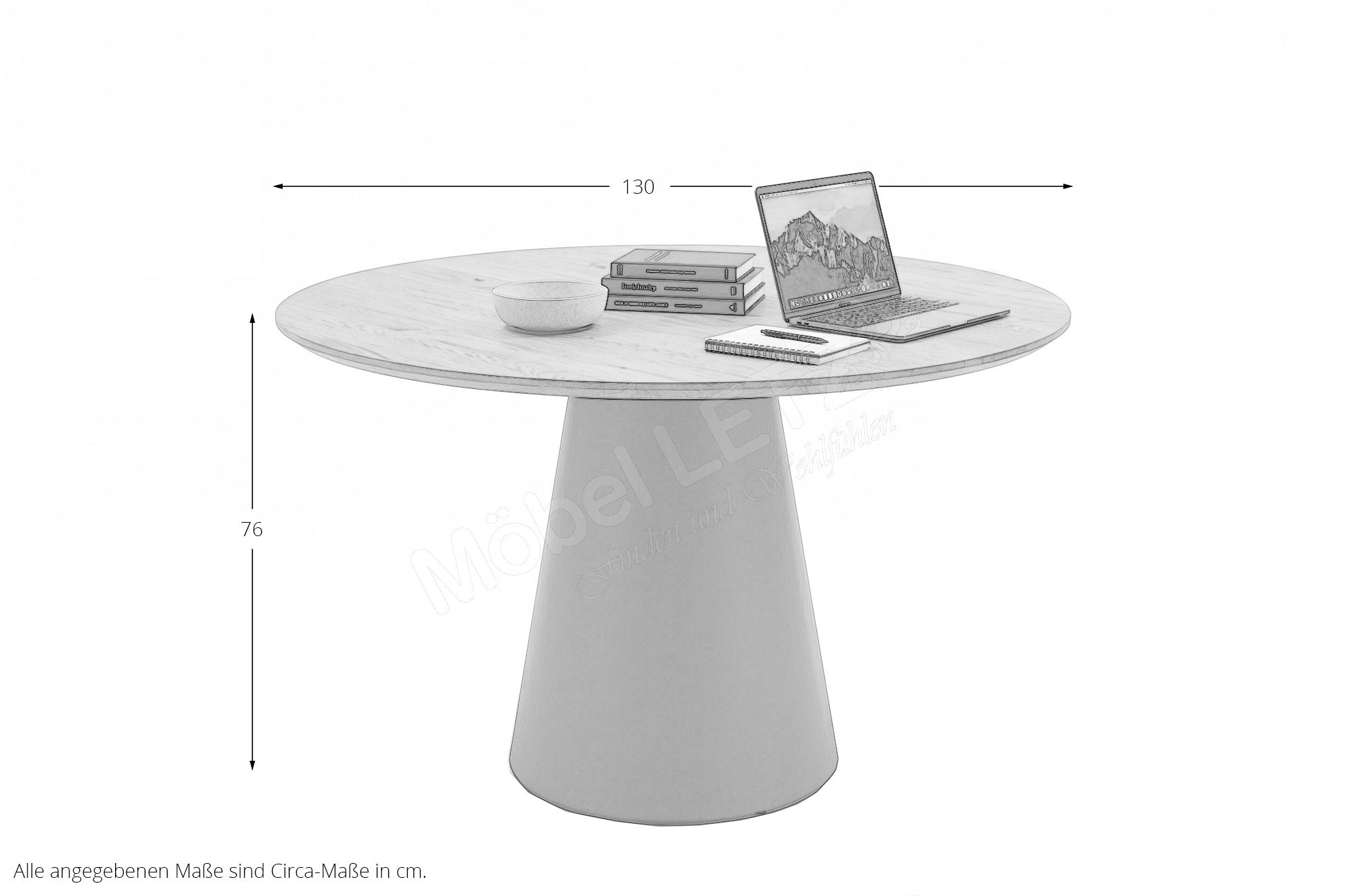 - 1 x JB63-48-130 - Esstisch ca. Ø 130 cm, Höhe ca. 76 cm