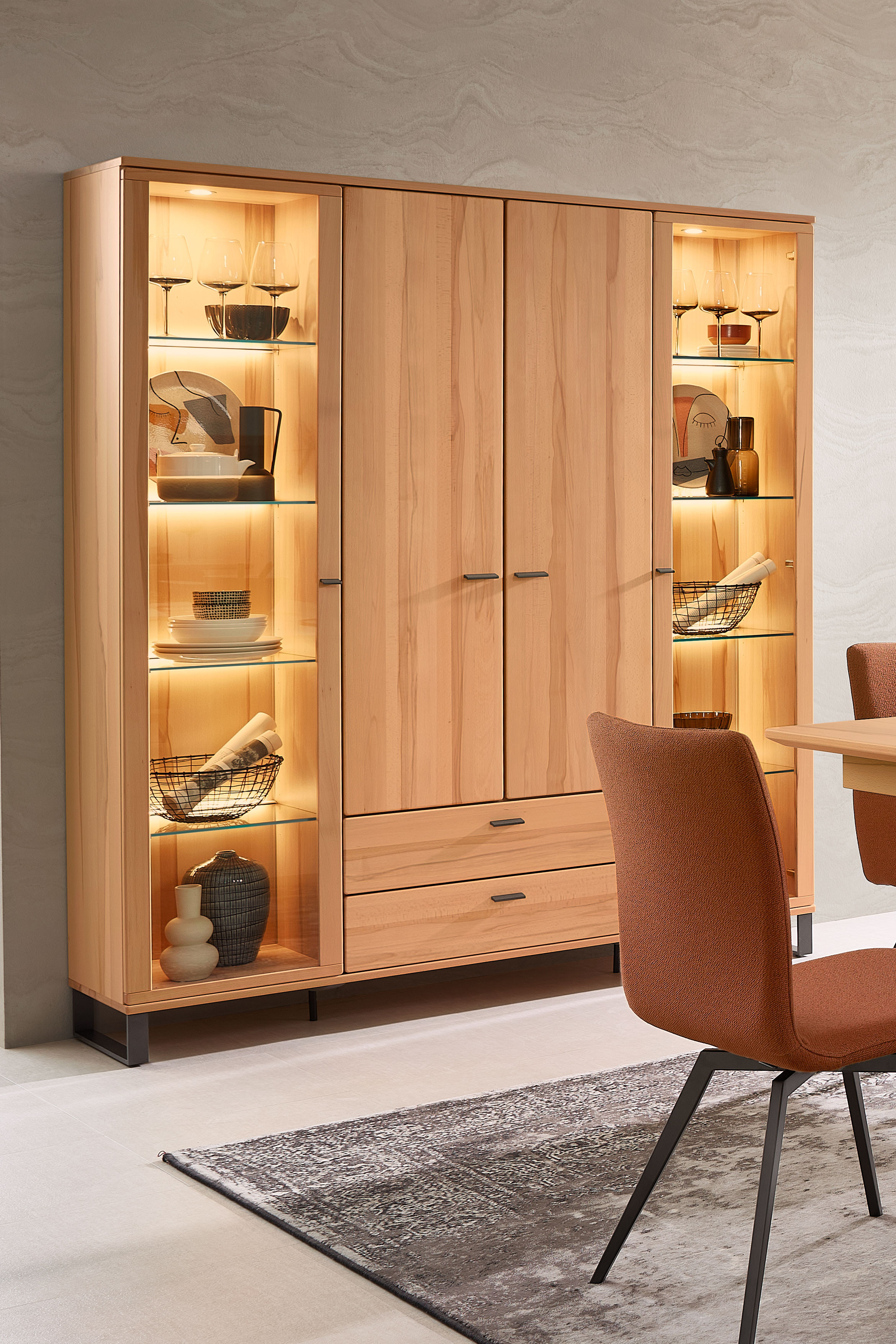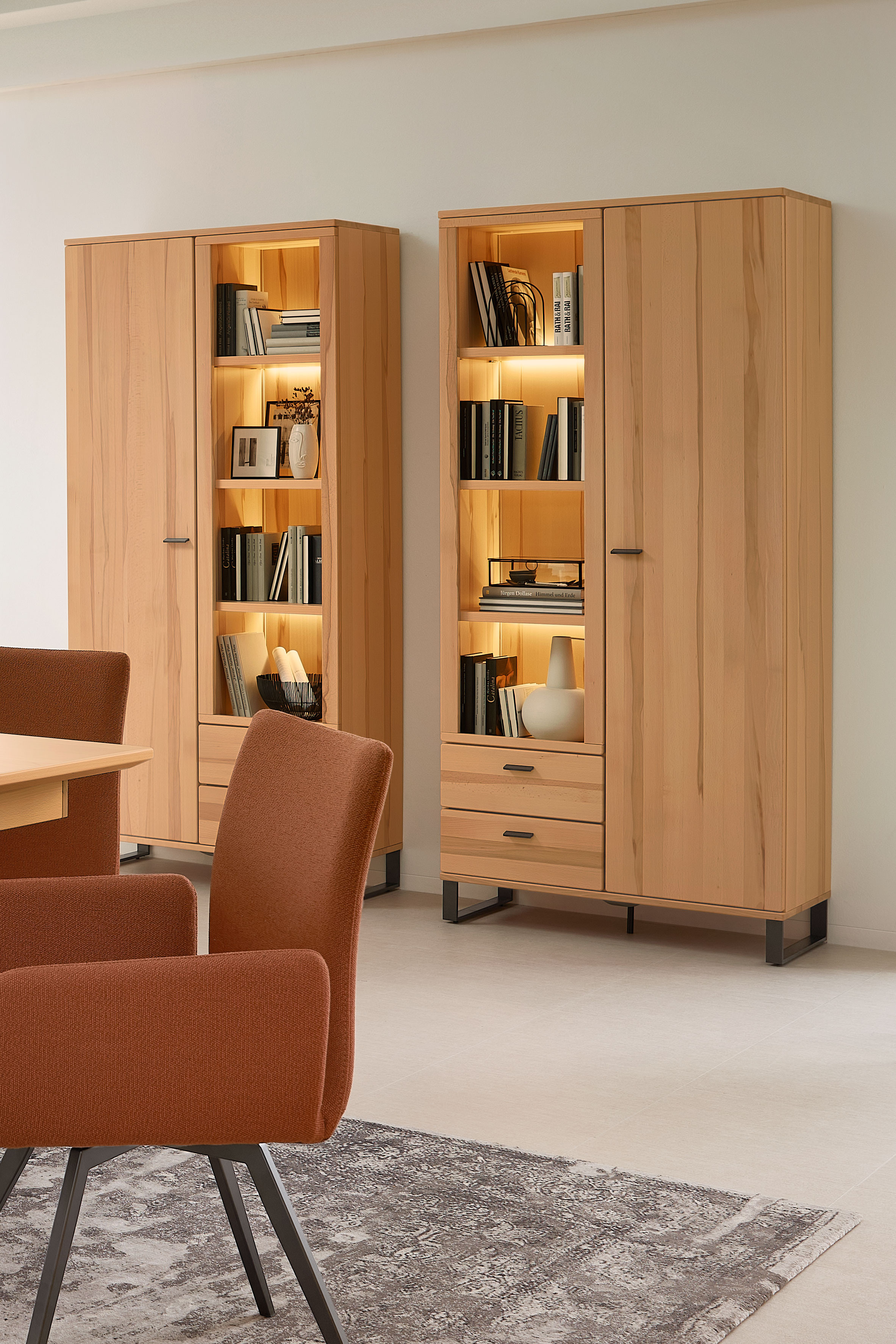 Vitrine mit 1 Glastüren, 3 Glasböden. 1 Holztüren, 4 Einlegeböden und 2 Schubkästen (Art-Nr. 23653-94272)