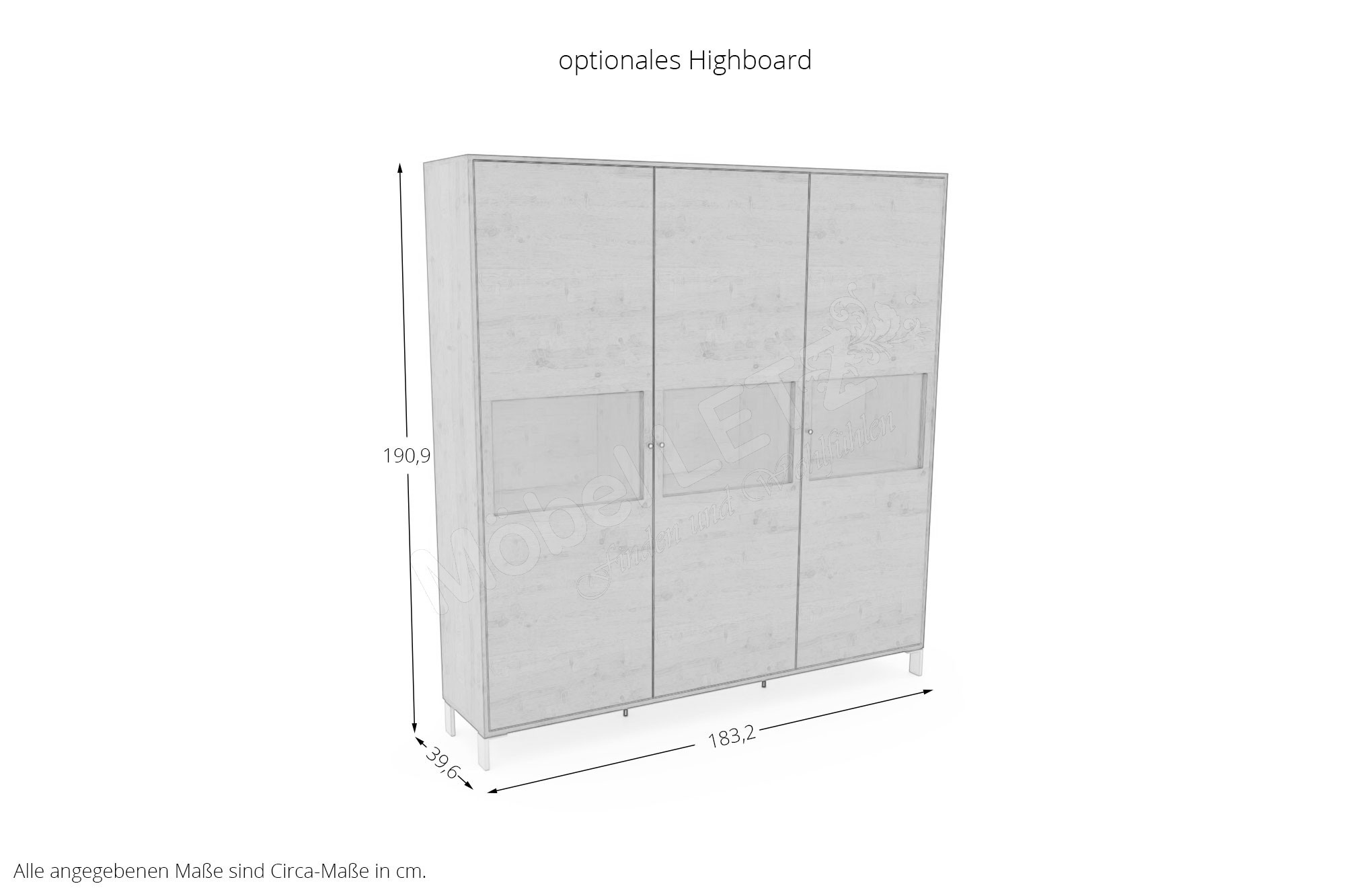 Highboard Concetto, ca. BHT: 183,2/190,9/39,3 cm