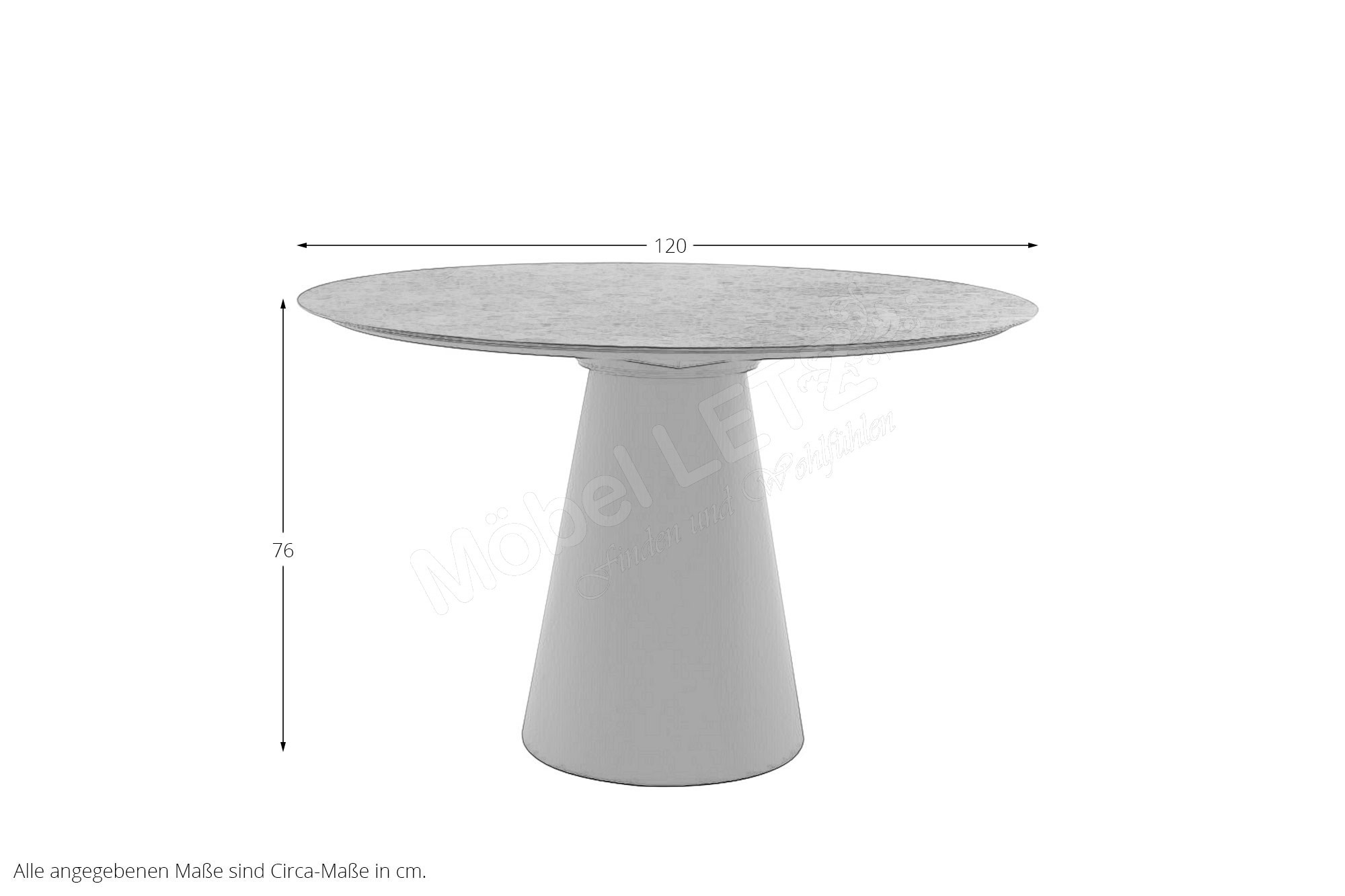 - Tischplatte: rund, Dekton Laurent, ca. 4 mm stark