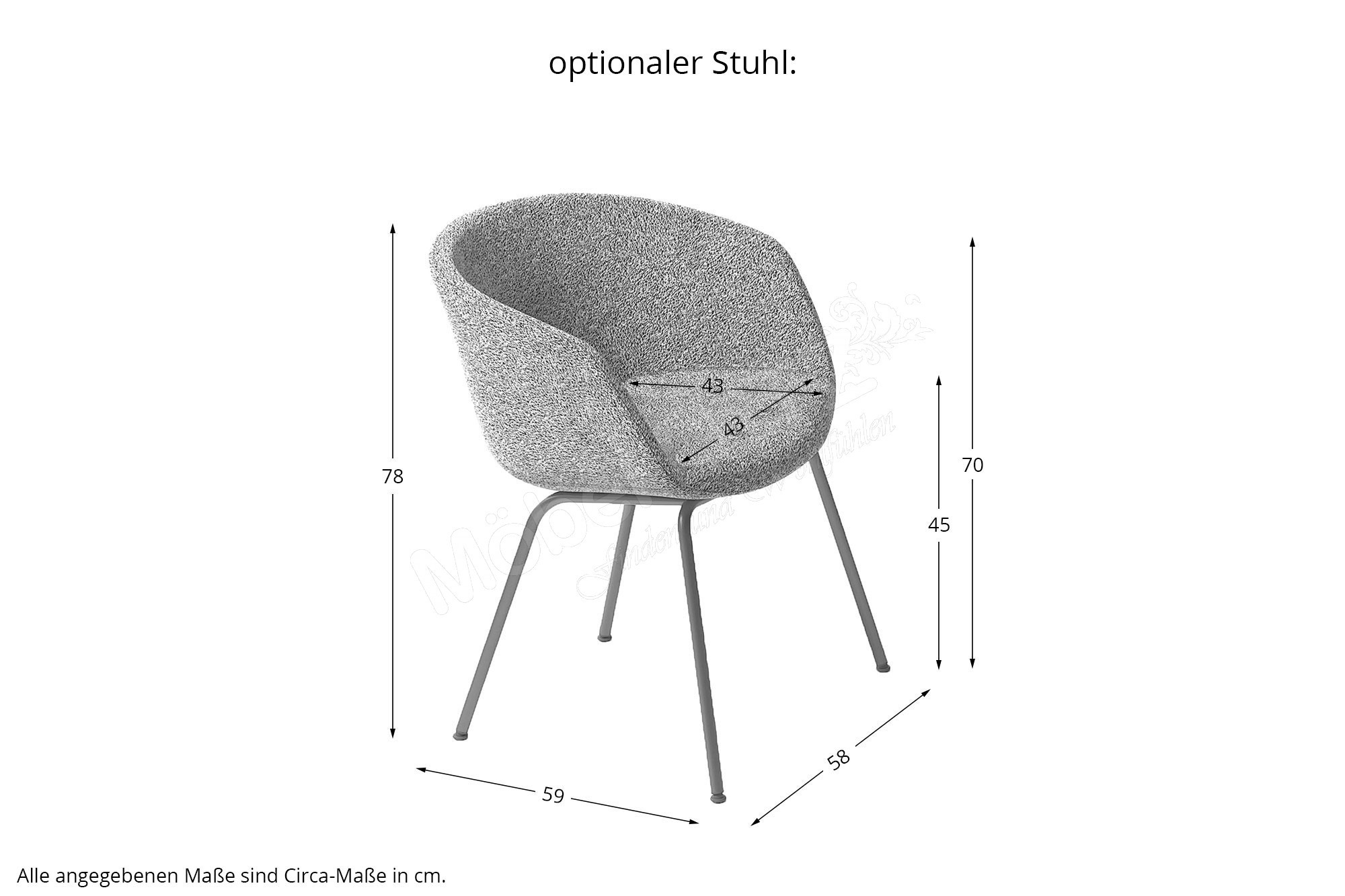 Stuhl Dongo, BHT ca.: 58/78/59 cm, Sitzbreite ca. 43 cm, Sitzhöhe ca. 45 cm, Sitztiefe ca. 43 cm, Armlehnenhöhe ca. 70 cm