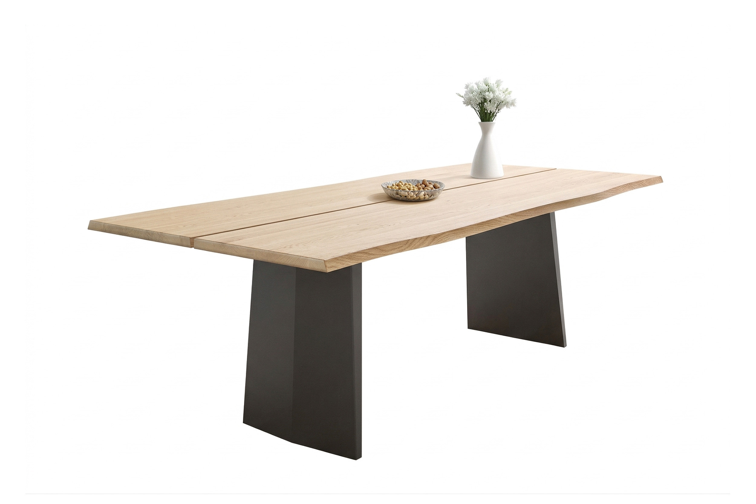 - Tischplatte: Eiche natur geölt, mittig geteilt, mit Baumkante, ca. 4 cm stark