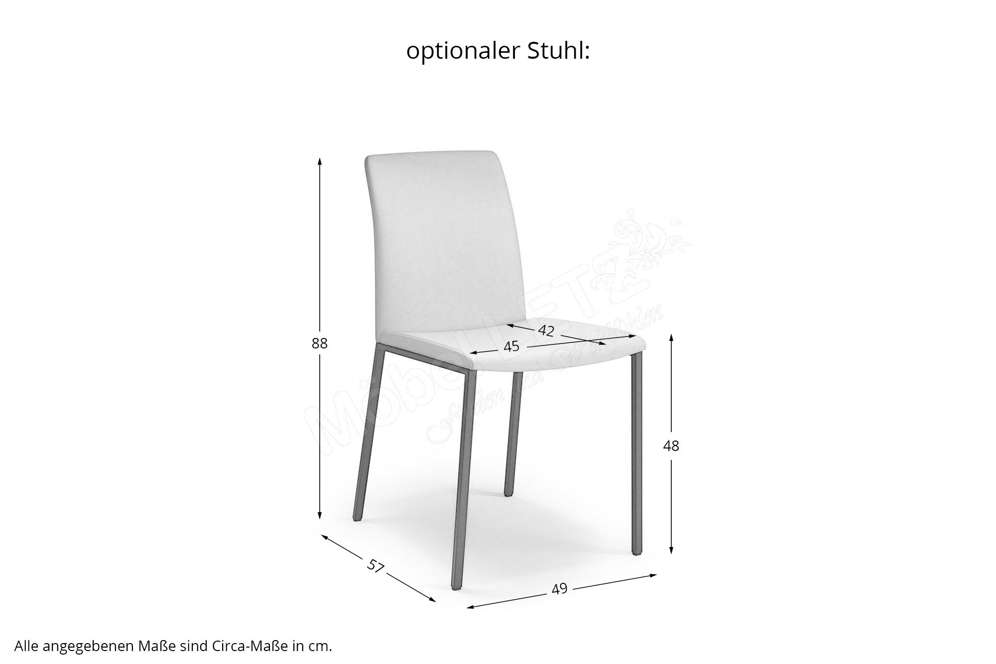 Stuhl Pavia, BHT ca.: 49/88/57 cm, Sitzbreite ca. 45 cm, Sitzhöhe ca. 48 cm, Sitztiefe ca. 42 cm