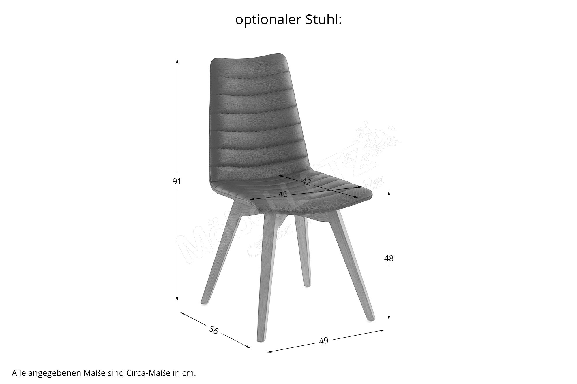 Stuhl Muralto, BHT ca.: 49/91/56 cm, Sitzbreite ca. 46 cm, Sitzhöhe ca. 48 cm, Sitztiefe ca. 42 cm