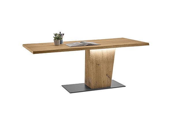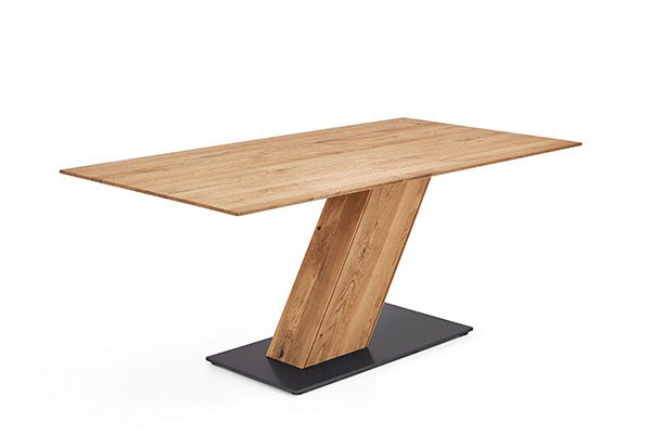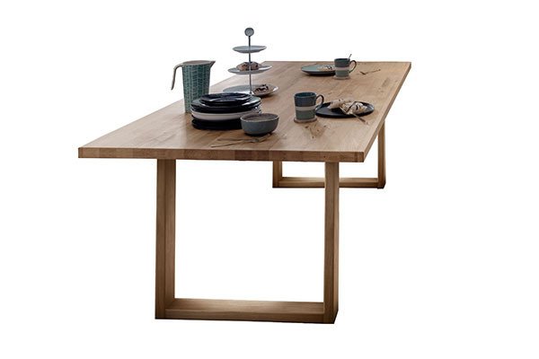 Klassiker für die Essgruppe sind rechteckige Esstische, die nahezu von jedem Hersteller bei Möbel Letz angeboten werden. Solche Tische können Sie vielseitig im Raum positionieren und mit verschiedensten Stühlen, Sesseln, Bänken oder Sofas kombinieren. Sanfter erscheinen ovale oder bootsförmige Tische mit weich gerundeten Ecken. Ovale und rechteckige Esszimmertische sind in unterschiedlichen Breiten- und Längenmaßen erhältlich, sodass es sowohl Tische für vier Personen als auch Modelle für sechs oder mehr Personen gibt. Als Tisch für eine kleine Küche eignen sich Esstische in quadratischer Form, die sich gut in der Raumecke platzieren lassen. Je nach Raumgröße und Personenzahl in Ihrem Haushalt ergänzen Sie den quadratischen Tisch mit zwei Stühlen oder einer Eckbank mit gleichlangen Schenkeln. In einem größeren Esszimmer oder Wohnzimmer sorgt ein großer Esstisch in runder Form für wohnliches Ambiente. Runde Esstische bieten die optimale Basis für gute Gespräche in angenehmer Atmosphäre, da sie keine feste Sitzordnung vorschreiben. Für die Küche eignen sich kleine runde Tische, die oft als Bistro-Tische zu finden sind. Hinsichtlich des Tischgestells finden Sie Klassiker mit vier Beinen, Wangen- und Kufentische sowie kreative Formen, wie bei einem Esstisch mit kreuzförmigem Gestell. Je nach Gestaltung wirkt das Gestell eher massiv oder filigran. Ganz ohne störende Tischbeine kommt ein Säulentisch aus, bei dem ein zentrales Standbein die Tischplatte trägt.