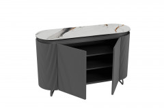 Mit der Anrichte Columbus von Akante zieht eine Aura moderner Eleganz und raffinierter Extravaganz in den Wohnraum ein. Die sanft gerundete Formensprache verbindet sich mit einer markanten, geriffelten Front aus holzfurniertem MDF zu einem ausdrucksstarken Designobjekt, das sowohl visuell als auch haptisch begeistert. Subtile Linienführung trifft auf eine kraftvolle Präsenz – ein Möbelstück, das nicht nur aufbewahrt, sondern inszeniert. Harmonisch darauf abgestimmt präsentiert sich die edle Keramik-Deckplatte, die in verschiedenen Ausführungen erhältlich ist und dem Ensemble eine exklusive Note verleiht. Die grifflose Push-to-open Funktion unterstreicht den puristischen Charakter und sorgt für höchsten Bedienkomfort. Getragen wird die Akante Esszimmerkommode von filigranen, mattschwarz pulverbeschichteten Stahlfüßen, die Leichtigkeit und Stabilität zugleich ausstrahlen. Ob in 130 cm oder 170 cm Breite – Columbus entfaltet in jeder Variante eine beeindruckende Wirkung. Ein Statement für stilbewusste Interieurs, das Funktionalität mit außergewöhnlicher Ästhetik verschmelzen lässt.