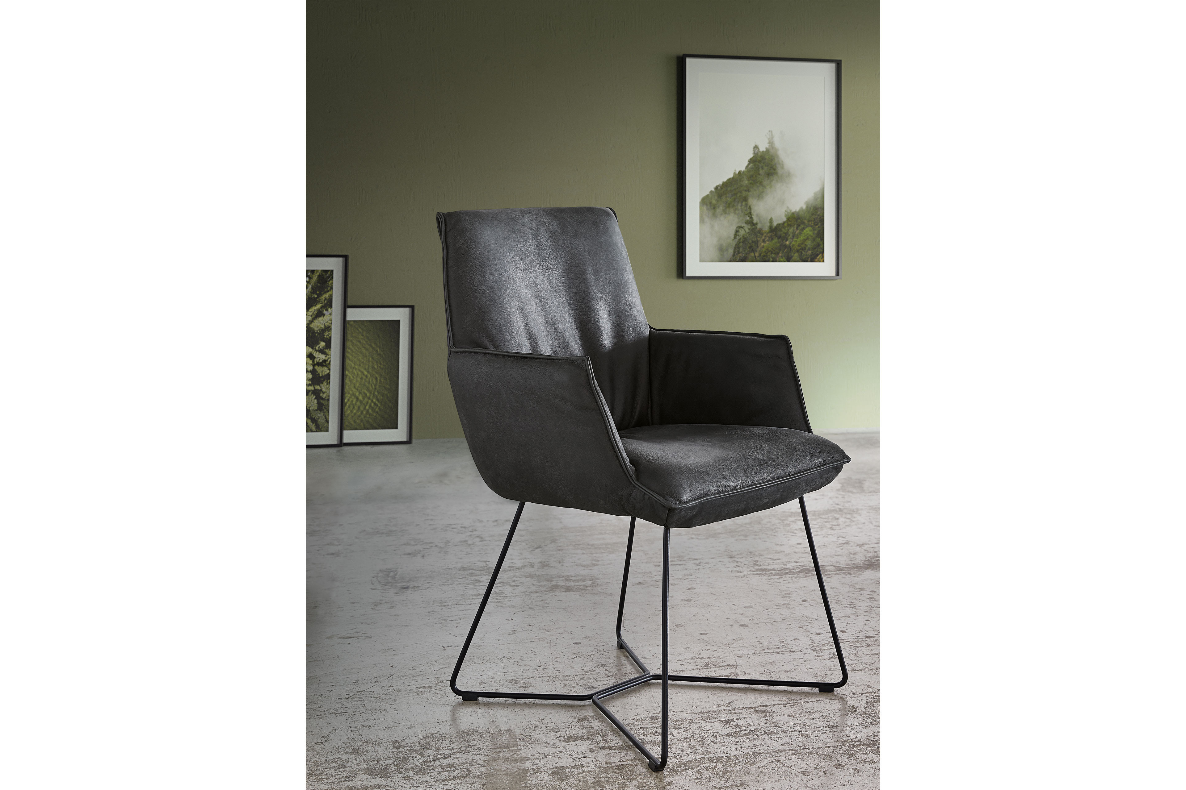 Der Hersteller KOINOR stellt Ihnen mit dem Stuhl 1205 ein Sitzmöbel vor, welches sich nicht nur als ein stilvoller Begleiter für Ihren Esstisch erweist, sondern mit hohem Sitzkomfort und dem Aufeinandertreffen von qualitativ hochwertigen Materialien von sich zu überzeugen weiß. In unserem Grundangebot erhalten Sie das Schmuckstück mit einem Anilinlederbezug in dem Farbton Omega. Dieser begeistert mit einer sehr angenehmen Haptik und wird von einer edlen Käntchenaht geziert, die den vornehmen Charakter des Möbels zusätzlich unterstreicht. Unter seinem wertvollen Gewand hält der Sitz zudem eine wunderbar behagliche Polsterung bereit, die aus einer Wellenunterfederung und Formschaum besteht. Der erstklassige, aus dieser Fusion entstehende Komfort begleitet Sie selbst über einen längeren Zeitraum des Sitzens hinweg und ermöglicht ein gelassenes Zurücklehnen in dem Qualitätsmöbel. Das filigrane Winkelgestell in schwarzer Pulverbeschichtung rundet das prächtige Äußere des Stuhles ab und unterstützt den Sitz mit einem stetig festen Stand. Auf Wunsch kann das tragende Element, mittels unserer praktischen Zusatzoptionen, auch in der Ausführung Edelstahl gewählt werden. Weitere individuelle Gestaltungsmöglichkeiten bietet Ihnen die Rubrik Wunschbezug, dort finden Sie zahlreiche Bezugsfarben und können den Stuhl so an Ihr bereits vorhandenes Interieur anpassen. Lassen auch Sie sich schon bald von dem KOINOR Esszimmerstuhl 1205 zu einem behaglichen Verweilen einladen und ordern Sie ihn noch heute in der von Ihnen favorisierten Aufmachung.