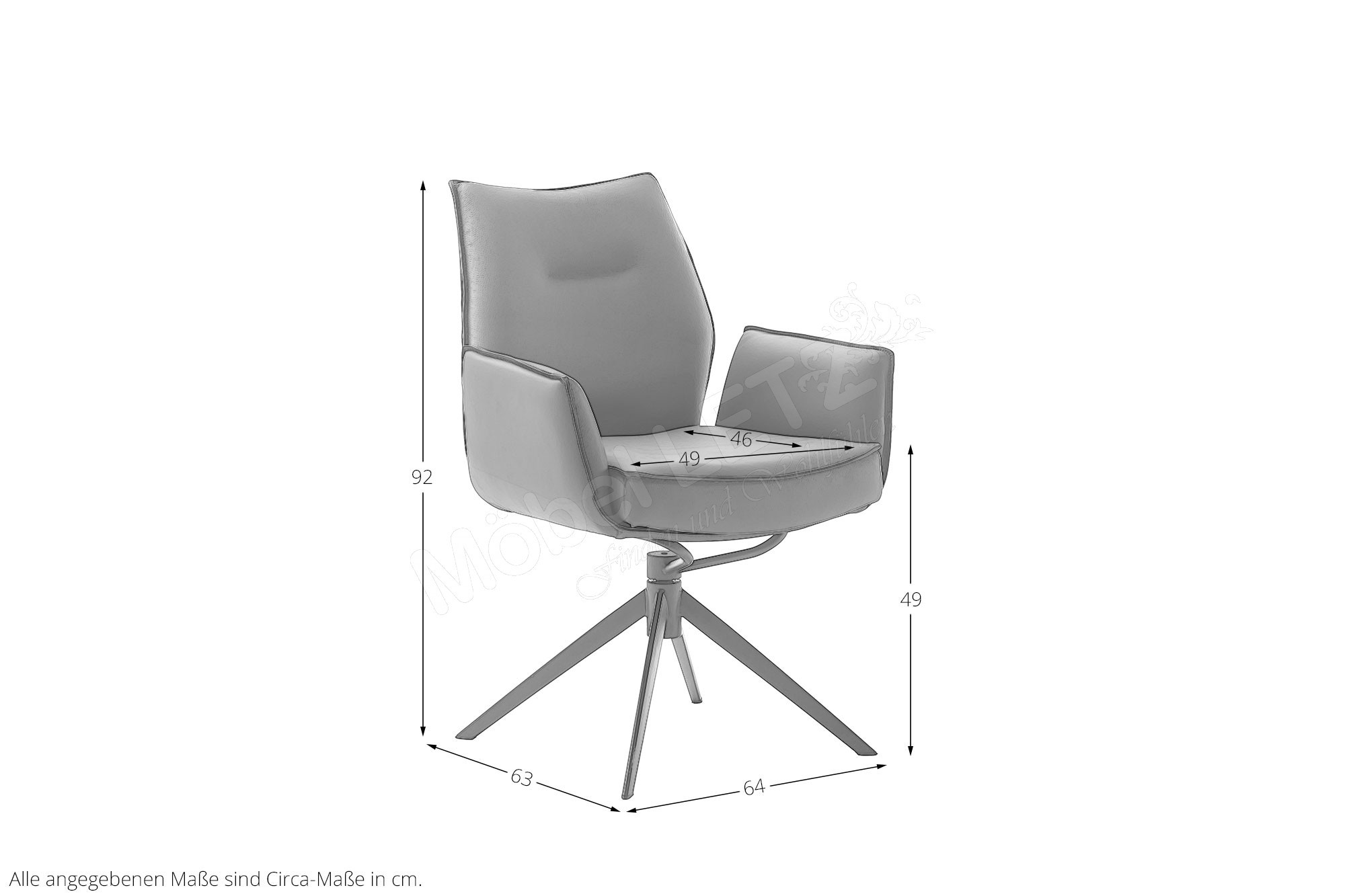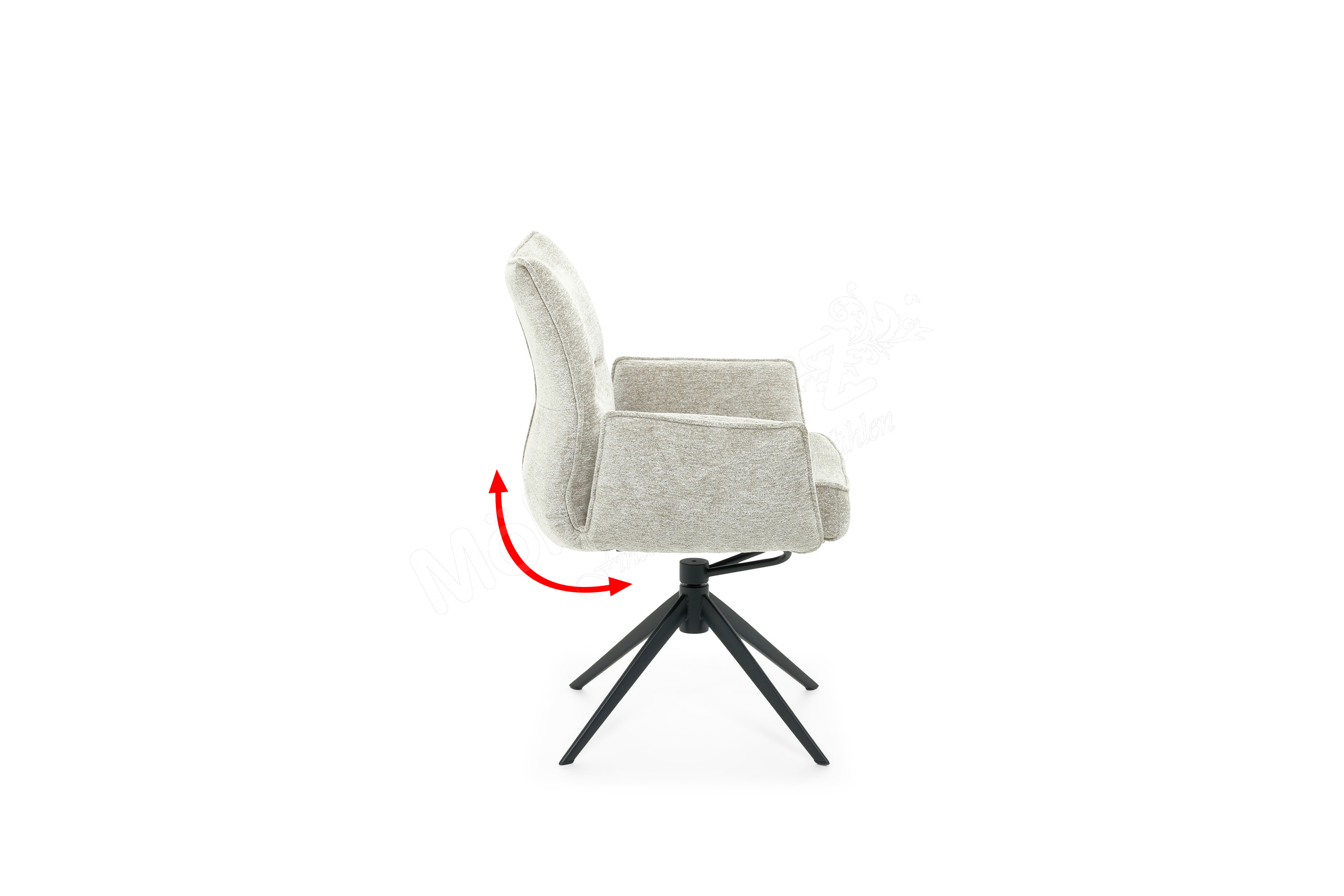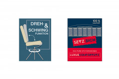 - Sitzschale um 360° drehbar mit automatischer Rückstellung und Schwingfunktion