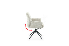 Die Sitzschale lässt sich um 360° drehen. Zusätzlich verfügt diese über eine Schwingfunktion, sowie eine automatische Rückstellfunktion. Hierbei dreht sich die Schale beim Aufstehen selbständig in die Ausgangsposition zurück.