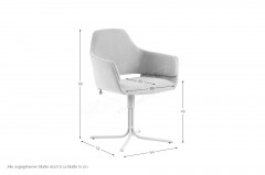 - Sitz: Formschale aus Sperrholz und einer Polsterung aus Super E-Schaum, HR-Schaum, HT-Schaum und T25-Schaum, um 360° drehbar mit Rückstellfunktion