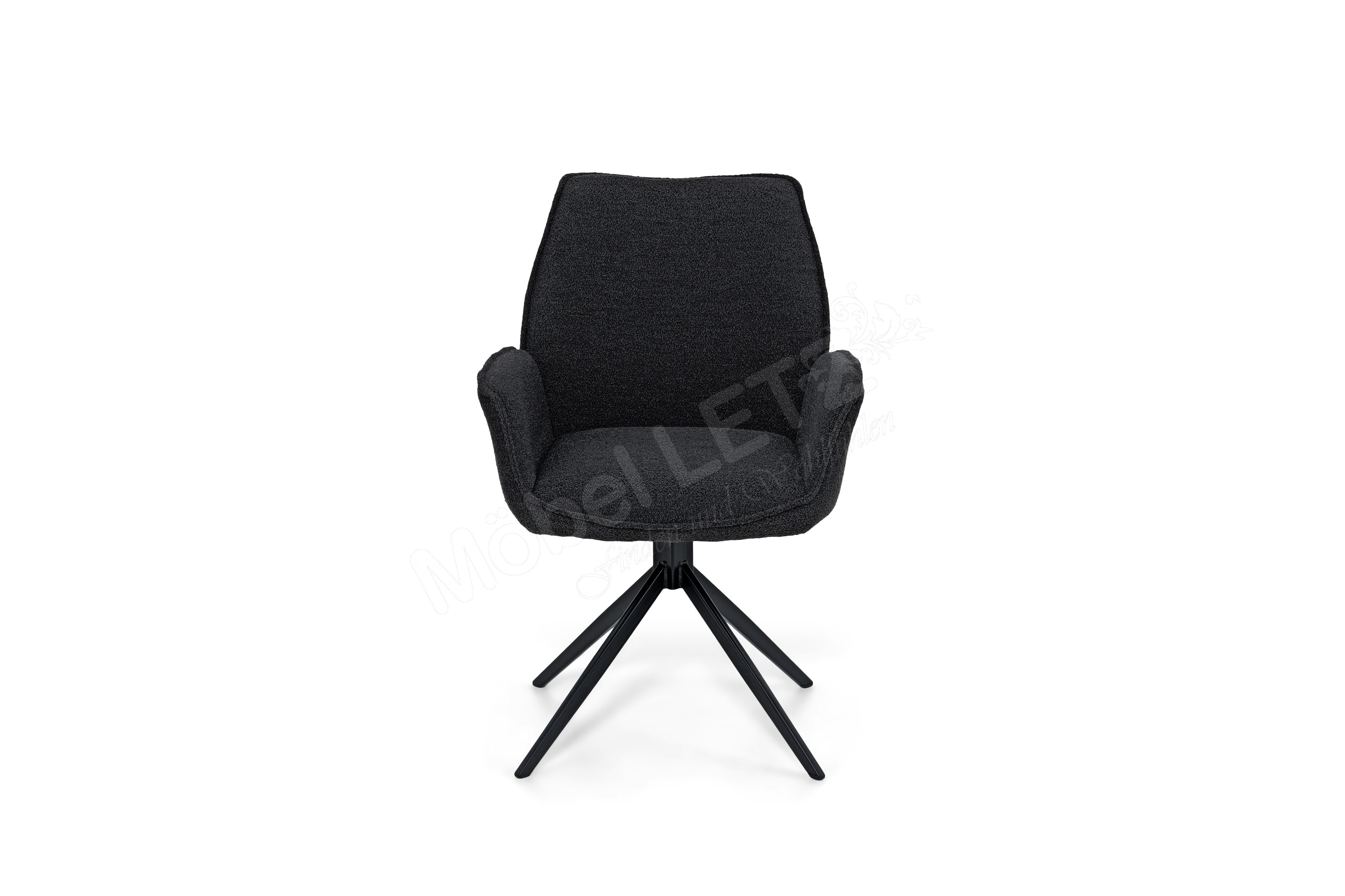 Der Polsterstuhl Tiama, stammend aus dem Hause Musterring, vereint gekonnt Behaglichkeit, Stilsicherheit und Funktionalität. Beginnend bei dem exklusiven Polsteraufbau aus Wellenfedern, welcher einen besonders bequemen Sitzkomfort verspricht und von einem adretten, samtig weichen Boulcé-Bezug in Anthrazit umhüllt ist. Weiterhin verfügt das Herzstück des Sitzmöbels über eine praktikable 180° Drehfunktion. Dank dieser Eigenschaft offeriert das Speisezimmermöbel eine stets bequeme Sitzposition sowie Bewegungsfreiheit bei Tisch. Überdies sorgt ein aus Eisen gearbeitetes Stativgestell für einen festen Stand, dessen schwarze Farbgebung dem Musterring Stuhl einen zeitlosen Charme verleiht. Mit dem Stuhl Tiama von Musterring treffen Sie genau die richtige Wahl, wenn Sie bei der Einrichtung Ihres Esszimmers Wert auf Komfort und Modernität legen.