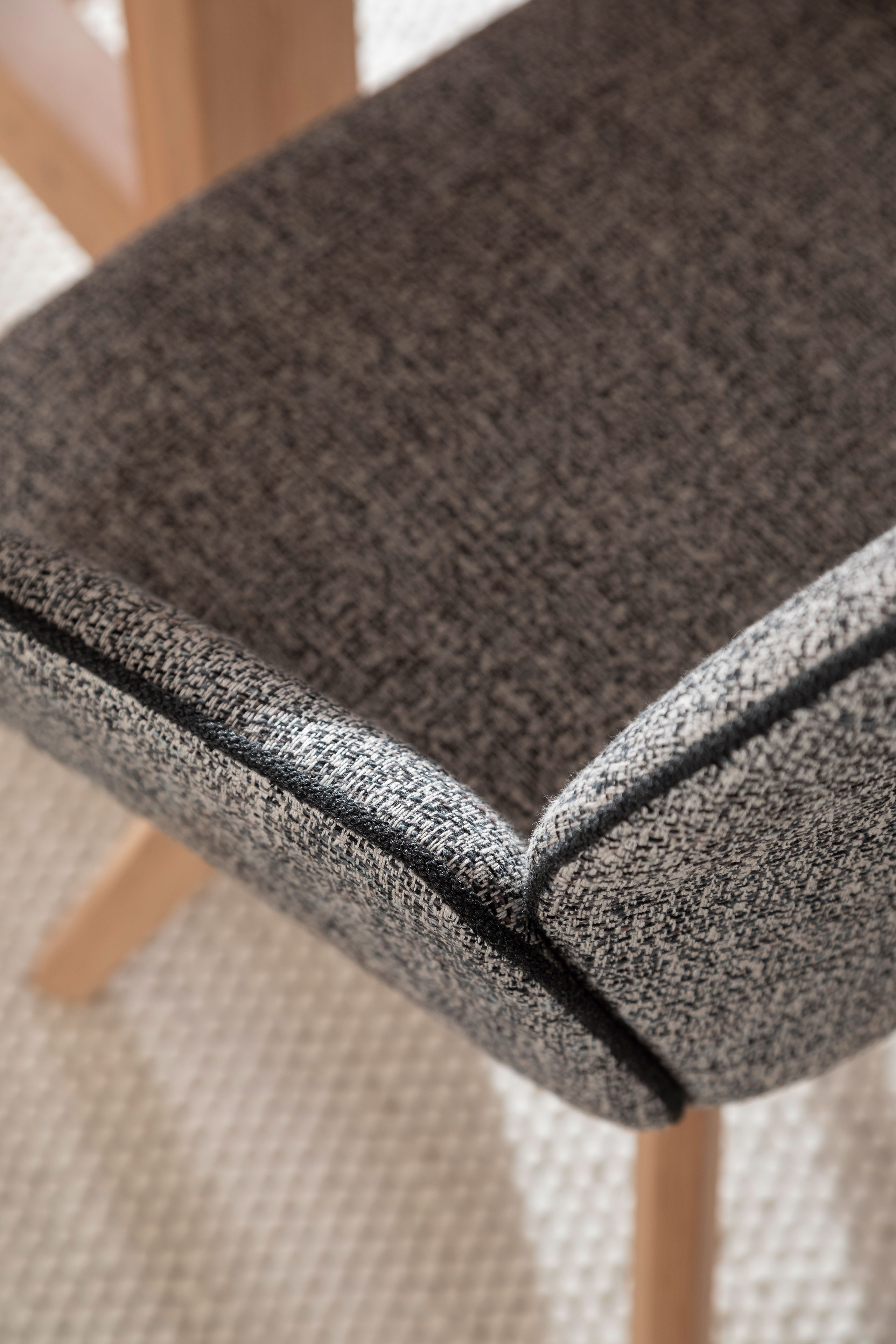 Der Esszimmerstuhl Honey Plus aus der SCHÖNER WOHNEN Kollektion präsentiert sich als stilvolles Möbelstück, das sowohl Funktionalität als auch Ästhetik in den Mittelpunkt rückt. Das Gestell aus hochwertiger Wildeiche, welches hell geölt wurde, verleiht dem Modell eine natürliche und warme Ausstrahlung. Die Verwendung von Wildeiche sorgt nicht nur für eine ansprechende Optik, sondern auch für eine außergewöhnliche Stabilität und Langlebigkeit. Mit einem anthrazitfarbenen Flachgewebe bezogen, der nicht nur angenehm im Sitzkomfort ist, sondern auch eine zeitgemäße Note in Ihr Esszimmer bringt, präsentiert sich die Sitzschale. Die Kanten der Sitzschale sind durch eine anthrazitfarbene Kedernaht verziert, die dem SCHÖNER WOHNEN Stuhl eine elegante und zugleich robuste Erscheinung verleiht. Denn Kedernähte sind nicht nur ein ästhetisches Element, sondern erhöhen auch die Haltbarkeit der Kanten und schützen sie vor Abnutzung. Insgesamt bietet Honey Plus nicht nur einen hohen Sitzkomfort, sondern auch eine durchdachte Designlösung, die sowohl optisch als auch funktional überzeugt.