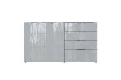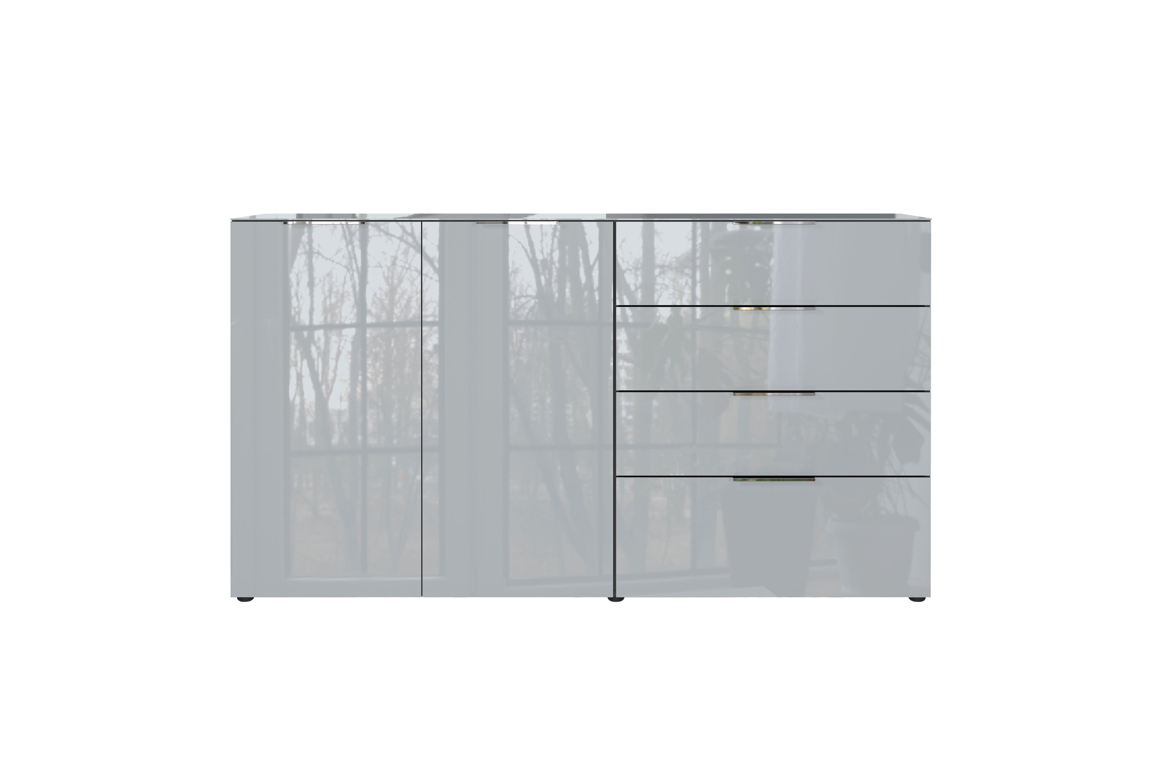 - Kommode mit 4 Schubfächern, 2 Türen, 3 Einlegeböden und Glasablage