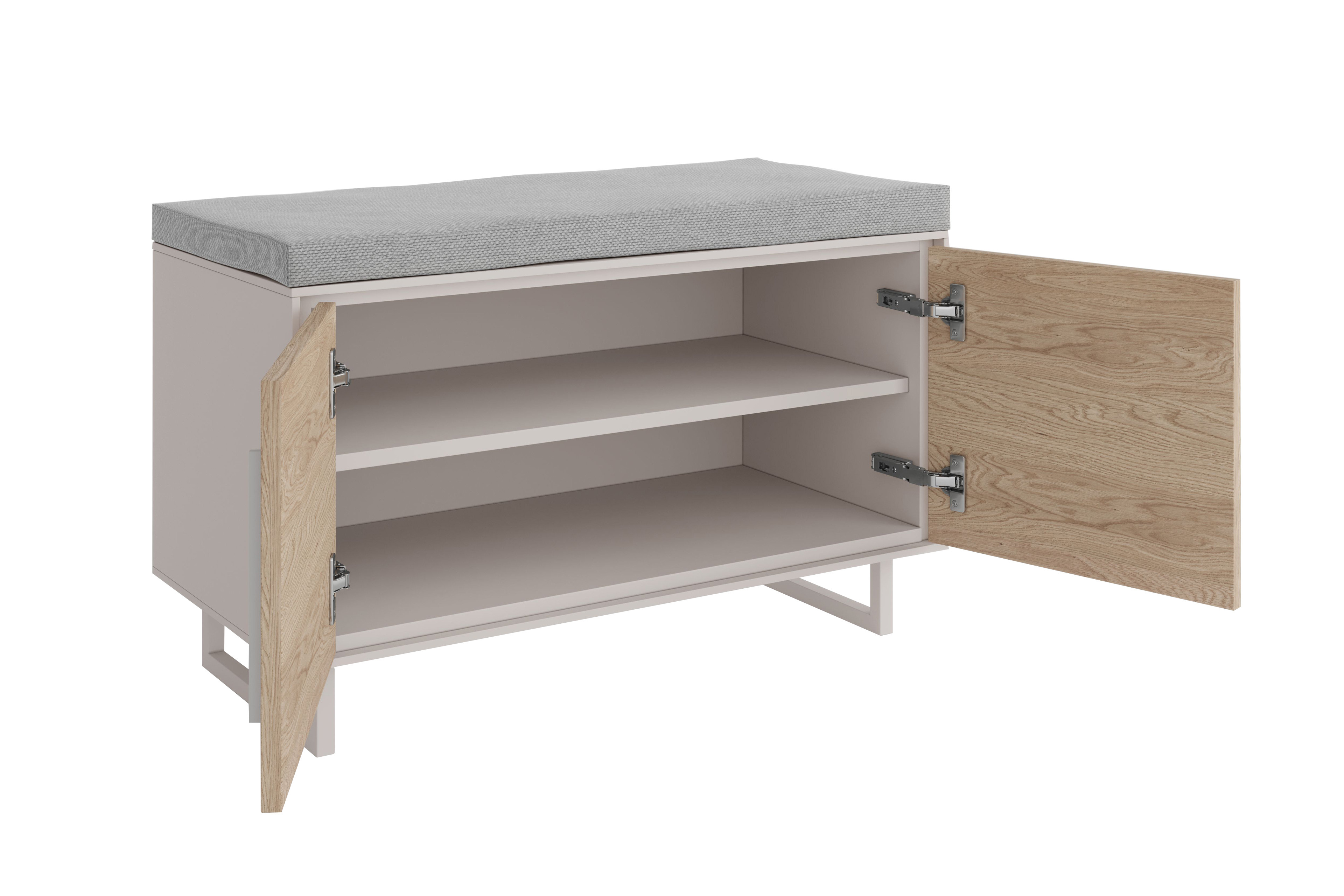 - Garderobenbank mit 2 Holztüren, 1 Einlegeboden und 1 Sitzkissen