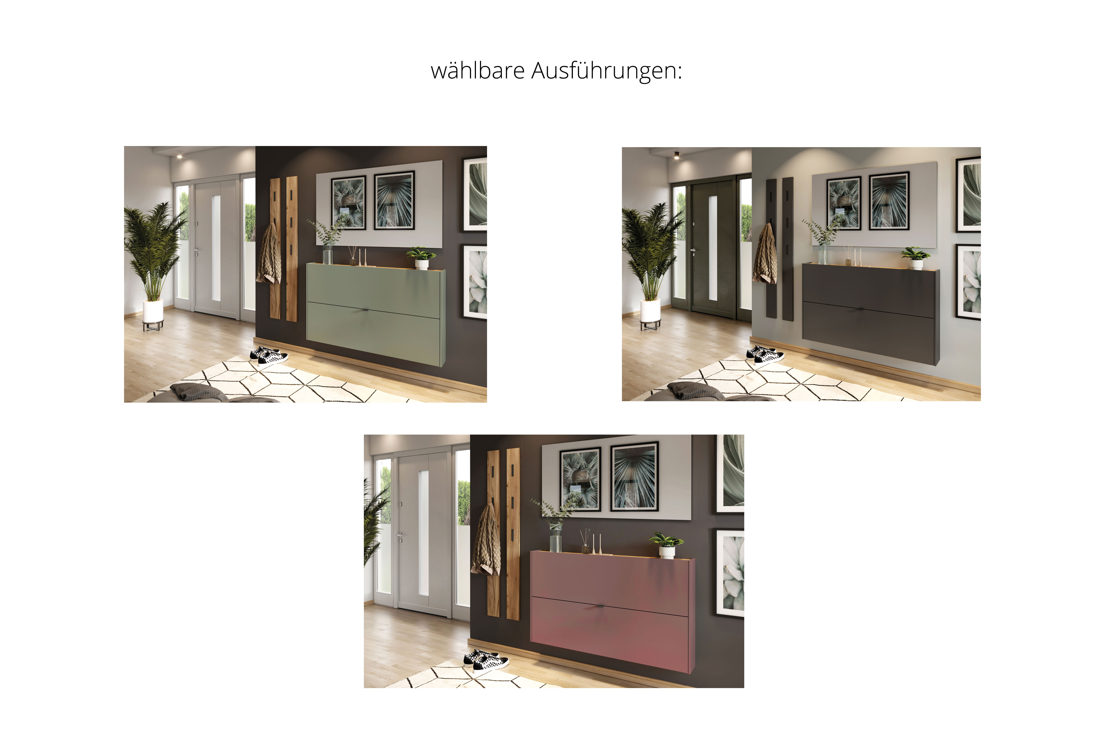 Was gibt es schöneres, als nach einem langen Tag nach Hause zu kommen und sich beim Öffnen der Haustür sofort wohlzufühlen. Dank der perfekten Garderobe GW-Ameca von Germania in Graphit / Navarra-Eiche ist das kein Problem. Dieses stilvolle und praktische Set bietet alles, was Sie für einen ordentlichen und ansprechenden Eingangsbereich in Ihrem Flur benötigen. Das Set besteht aus einem Schuhschrank in Graphit und Navarra-Eiche, sowie einem passenden Spiegel. Der Schuhschrank verfügt über mehrere Fächer mit genügend Platz für etliche Schuhpaare und schafft somit Ordnung in Ihrem Flur. Die ansprechende Oberfläche aus Navarra-Eiche bietet außerdem eine praktische Ablagefläche für Schlüssel, Geldbörsen oder andere kleine Gegenstände, die Sie immer griffbereit haben möchten. Der dazu passende Spiegel vervollständigt das Set und ist nicht nur eine praktische Ergänzung, sondern auch ein stilvolles Accessoire. Als optionales Highlight können Sie sich die praktischen Paneele gleich dazubestellen. Für welche Kombination Sie sich auch entscheiden, das Set GW-Ameca aus dem Hause Germania überzeugt nicht nur mit seinem attraktiven Aussehen, sondern auch mit seiner hochwertigen Verarbeitung. Bestellen Sie jetzt und genießen Sie Ihre neue, perfekt organisierte Garderobe.