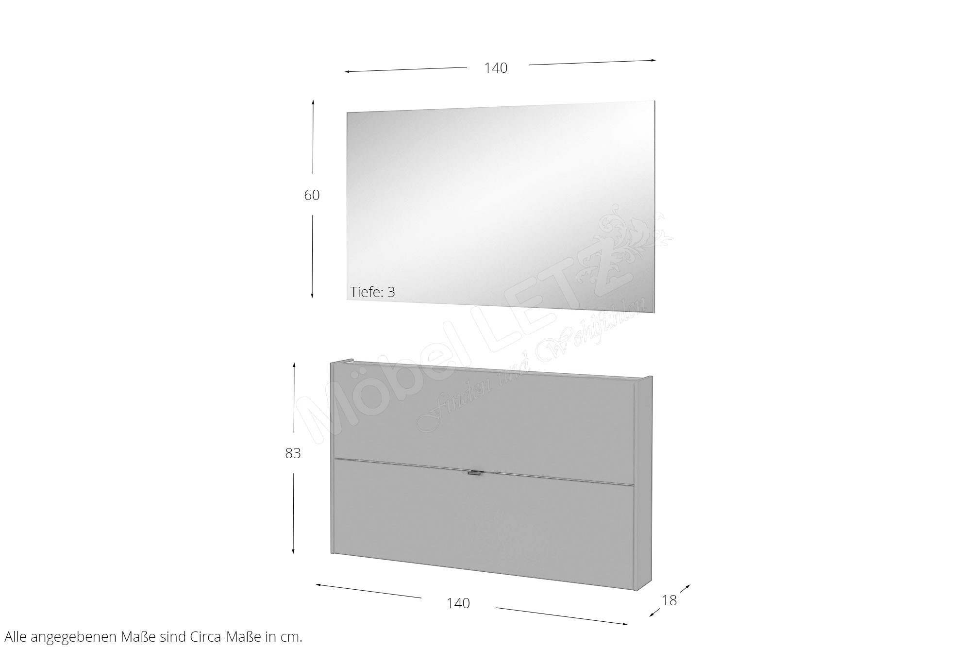- 1 x 1392-675 - Schuhschrank, BHT ca.: 140/83/18 cm