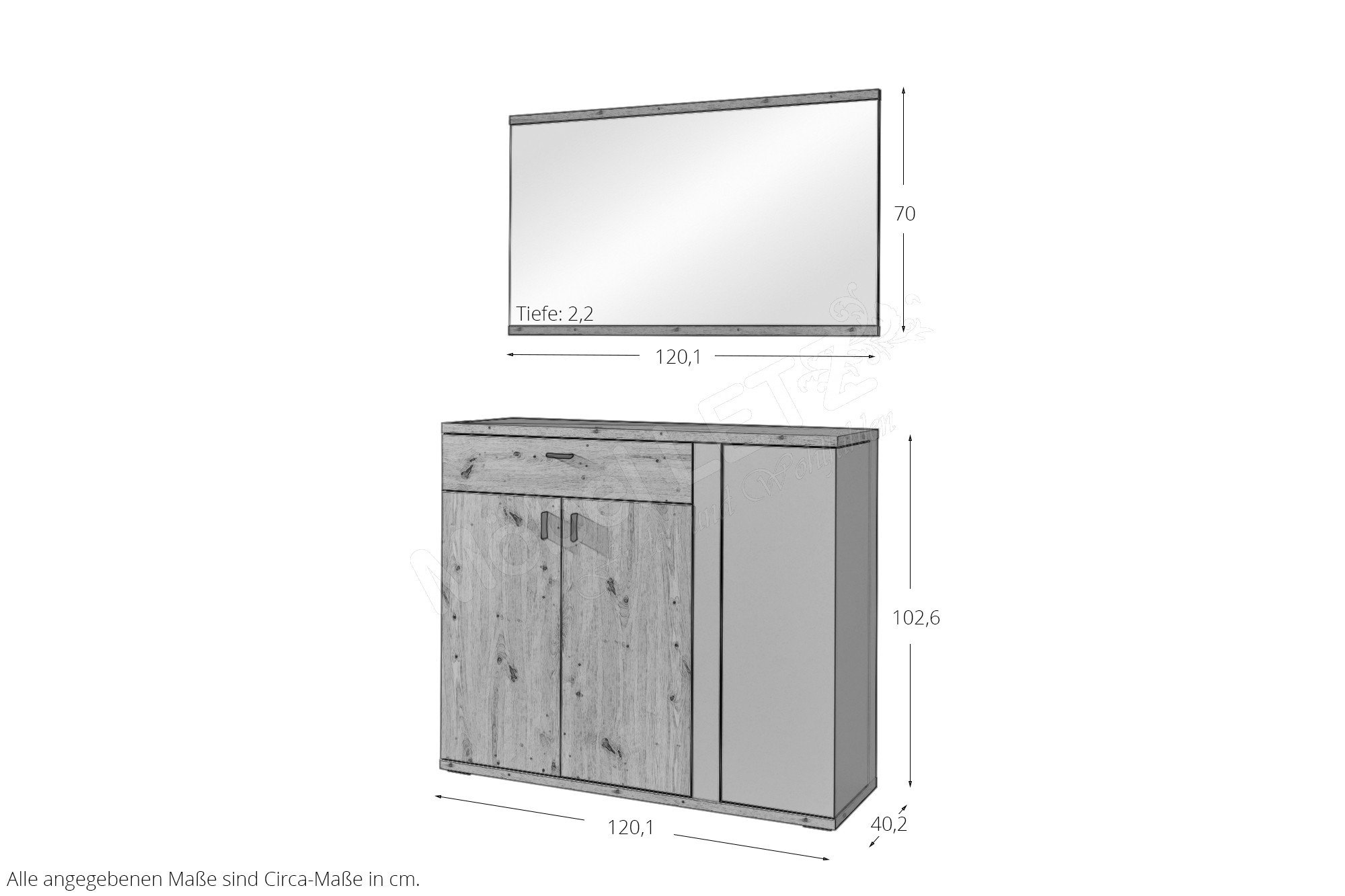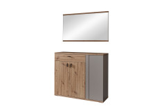 Mit dem Duo Grado-Foyer von Ideal Möbel erwartet Sie ein Garderobenset, das nicht nur auf kleinem Raum viel Platz zur Verfügung stellt, sondern auch dank modernem Design voll im Trend liegt. Grado bereichert Ihr neu gestaltetes Foyer mit einem gekonnten Farb- und Materialmix aus Basalt grau und Eiche Artisan, was Ihrem Eingangsbereich eine ganz besondere Note verleiht und gleich beim Heimkommen einen Wohlfühlmoment erzeugt. In Ihrem Set ist ein großer Spiegel sowie eine moderne Kommode enthalten, die hinter zwei Türen und in einem Schubkasten jede Menge Platz für Ihre alltäglichen Dinge zur Verfügung stellt. Der besondere Hingucker ist das basalt graue Drehregal, welches je nach Bedarf offen oder geschlossen in der Kommode gezeigt werden kann. So können Sie nach Lust und Laune Ihre Deko gekonnt platzieren oder alles hinter verschlossener Front verwahren. Die optionalen Garderobenpaneele können mit insgesamt vier Haken punkten, wobei zwei davon ausgeklappt werden können. Ebenfalls in unseren Zusatzoptionen erhältlich, ist der große Garderobenschrank mit einer praktischen Spiegeltür und einer Holztür hinter denen sich insgesamt fünf Einlegeböden verbergen. Machen Sie Ihren Traum von einem aufgeräumten Eingangsbereich wahr und bestellen Sie sich noch heute Ihr neues Garderobenset Grado-Foyer von Ideal Möbel.