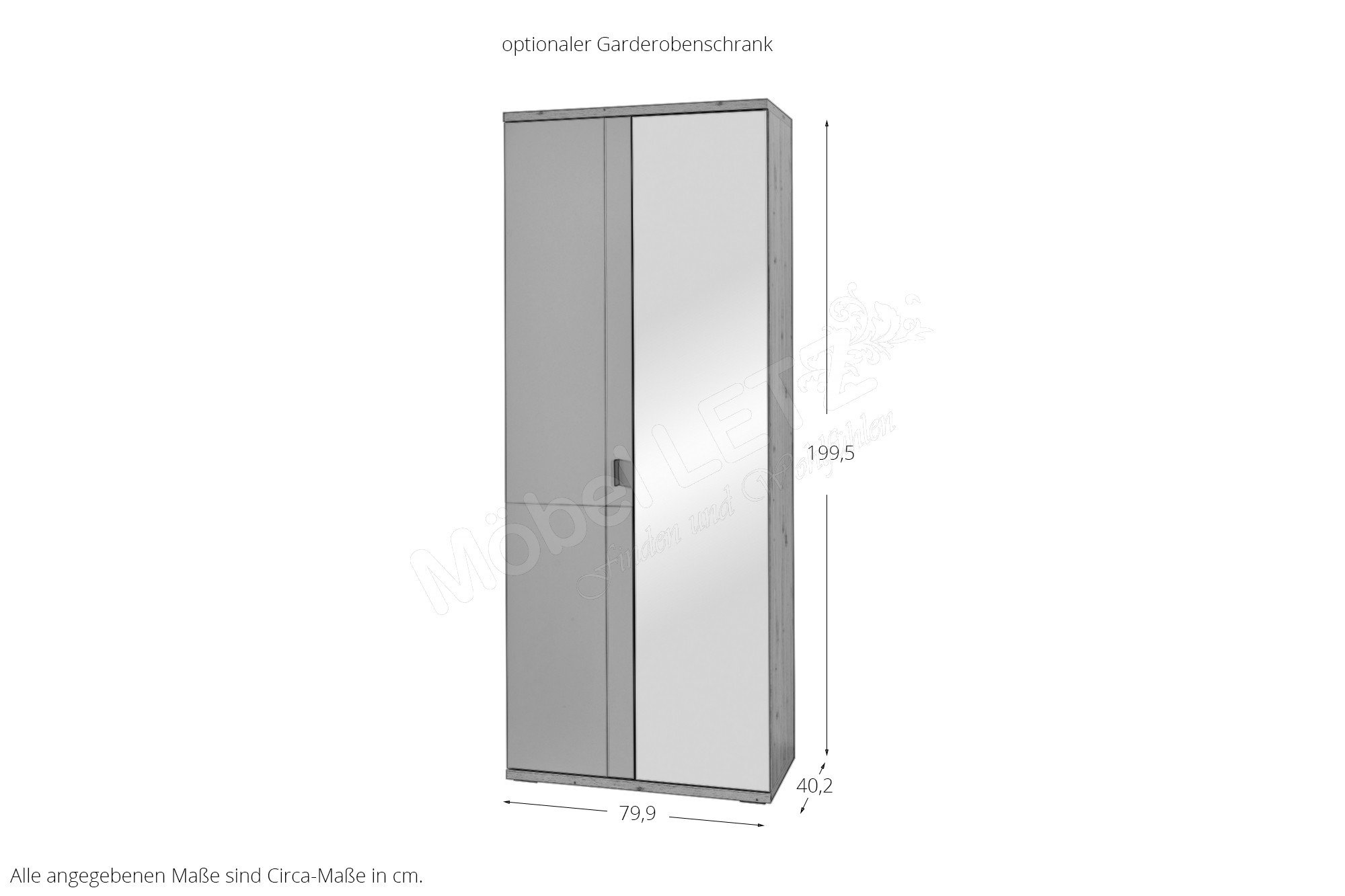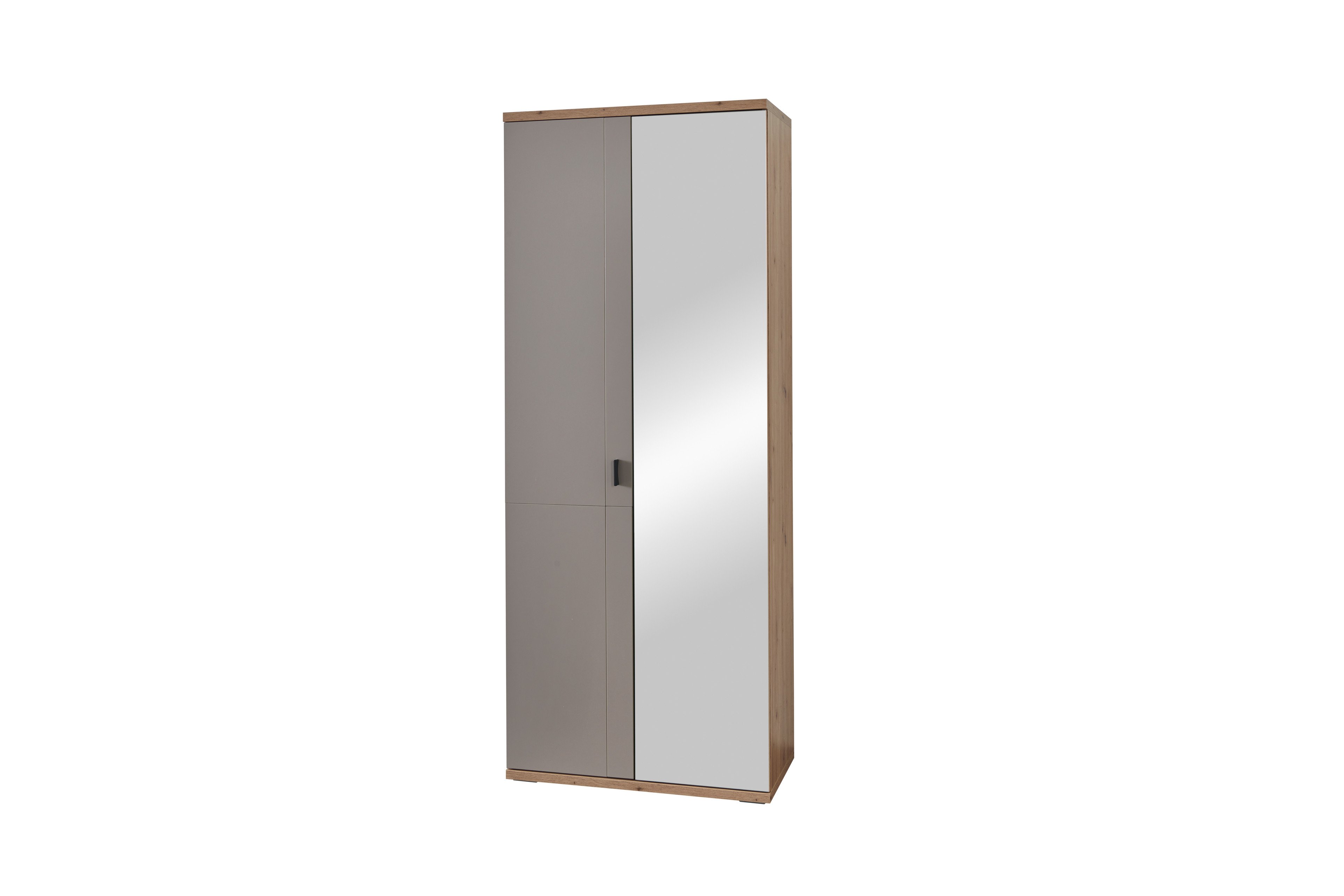 Garderobenschrank mit 1 Spiegeltür (rechts) 1 Holztür und 5 Einlegeböden, BHT ca.: 79,9/199,5/40,2 cm (Art-Nr. Type 83)