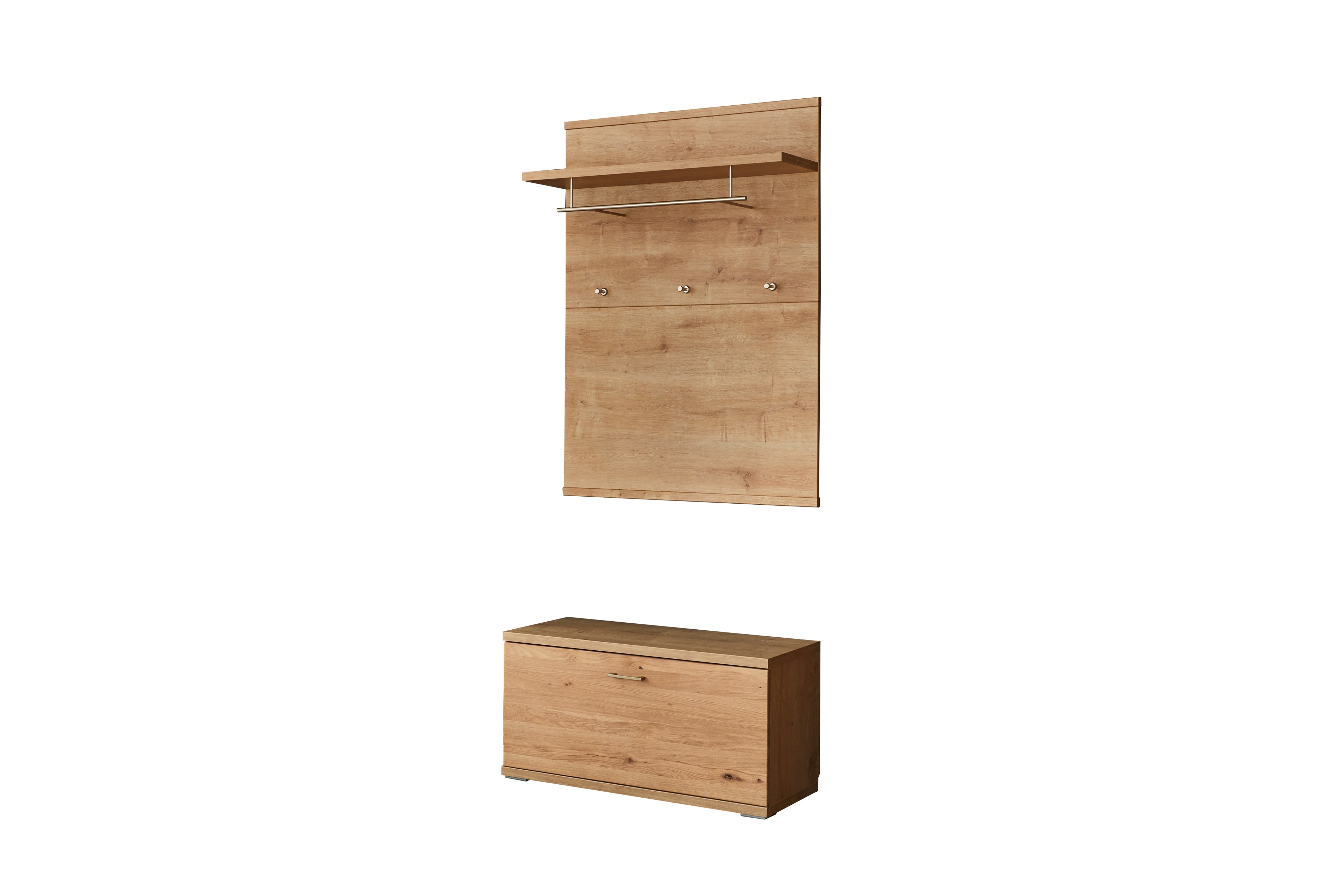- Garderobenpaneel mit 3 Haken, 1 Kleiderstange und 1 Ablageboden