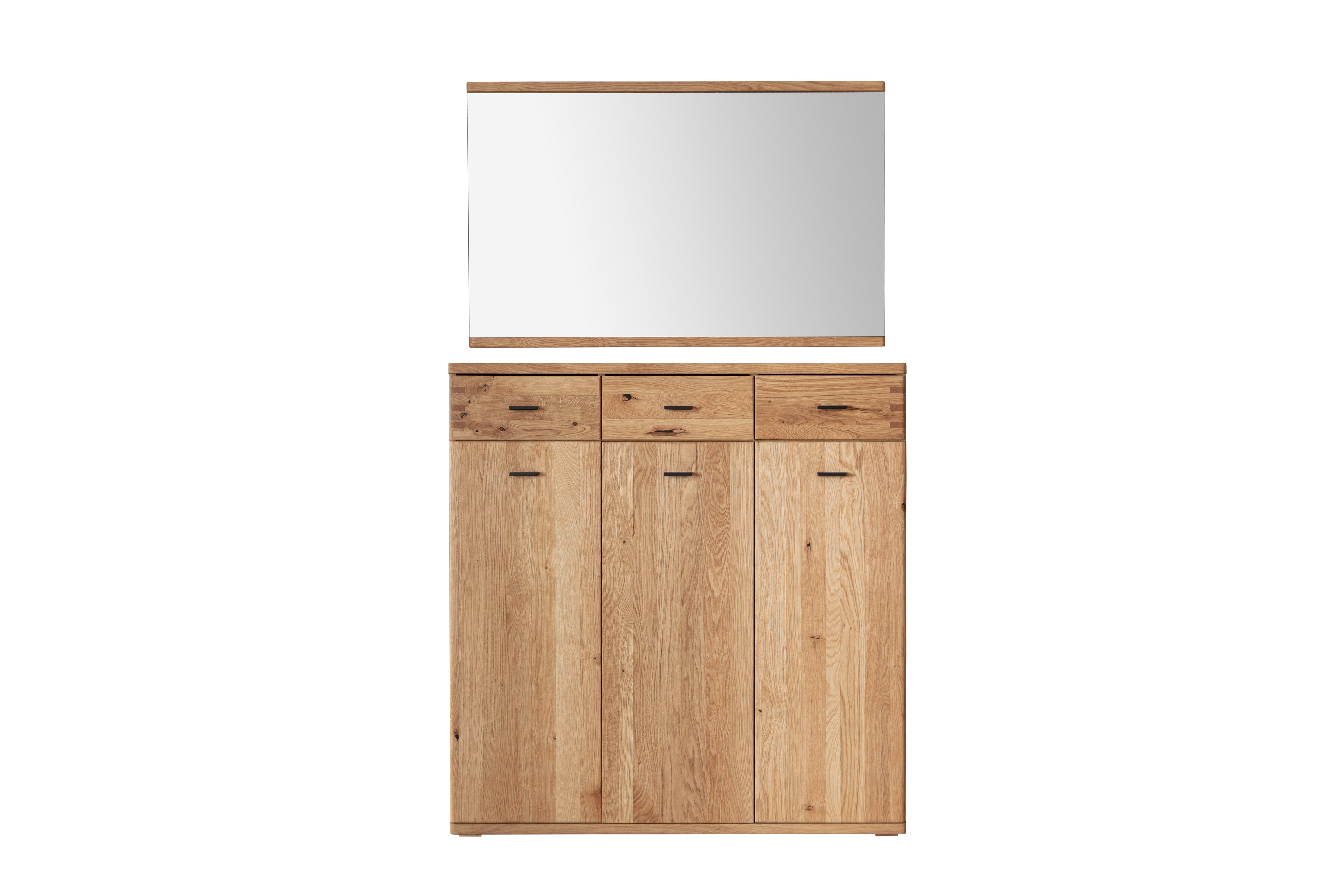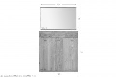 Ein enger Flur, in dem nur eine Lampe für schwaches Licht sorgt, versinkt im undurchdringlichen Chaos - diesen Raum will niemand sein Eigen nennen. Doch in vielen Dielen fehlt es schlichtweg nur an praktischen Möglichkeiten zum Verstauen. Ärgern Sie sich nicht mehr über diese Probleme und bestellen Sie noch heute eine Garderobeneinrichtung der besonderen Art, die sich von nun an um die benötigte Ordnung sorgt: Das Modell Lopez aus dem Hause MCA Furniture begeistert mit einer natürlichen hellen Front, die auch dem dunkelsten Zimmer eine freundliche Atmosphäre verleiht. Modern gesellen sich die schwarzgrauen Griffe hinzu und die durchgehenden Lamellen an den Seiten der Kommode, vollenden das Design perfekt - so lässt sich diese bezaubernde Serie auch in Ihrem Eingangsbereich integrieren. Genügend Stauraum verbirgt sich bereits in der Flurkommode, denn hinter den drei Türen verstecken sich vier Einlegeböden, auf denen Schuhe und alltägliche Dinge einen perfekten Unterschlupf erhalten. Die Schubkästen hingegen kümmern sich souverän um die Accessoires und halten diese zum Aufbruch direkt griffbereit. Das abgebildete Garderobenpaneel können Sie unter unseren Zusatzoptionen hinzubuchen und Sie erhalten ein perfekt auf Ihre Bedürfnisse abgestimmtes Entree. Mehr als nur Möbelstücke - Lopez von MCA Furniture.